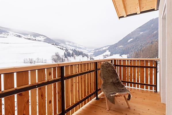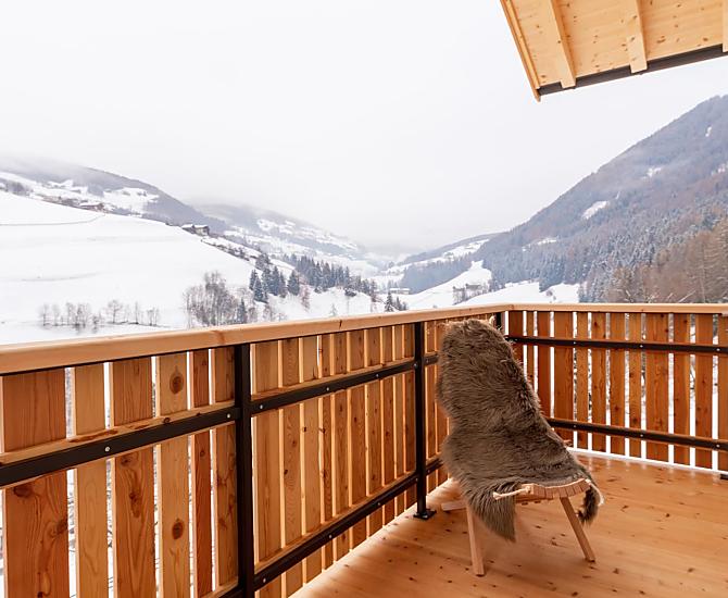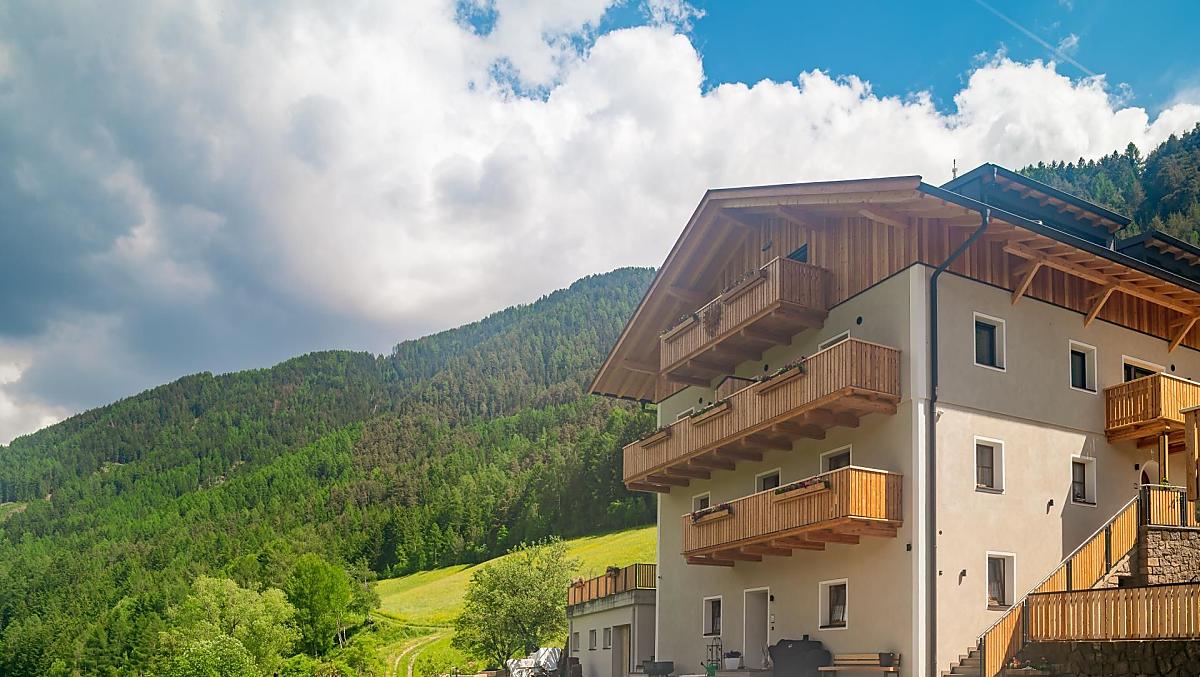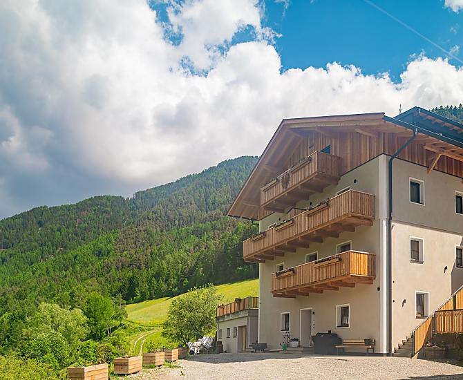 Our farm is situated on a small hill on the outskirts of Villnöss with a marvellous mountain view surrounded by lush meadows and forests.