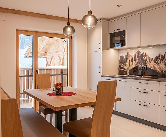 The centre of the village of Villnöss can be reached on foot in approx. 30 minutes via pleasant hiking trails through meadows and forests, although public transport can also be used in the immediate vicinity. We are located at approx. 1,038 m above sea level and are only a few minutes by car from the A22 motorway.