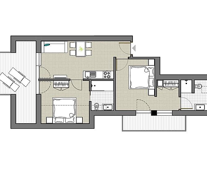 4 holiday flats: 2-4 persons, 2-5 persons, 2-6 persons