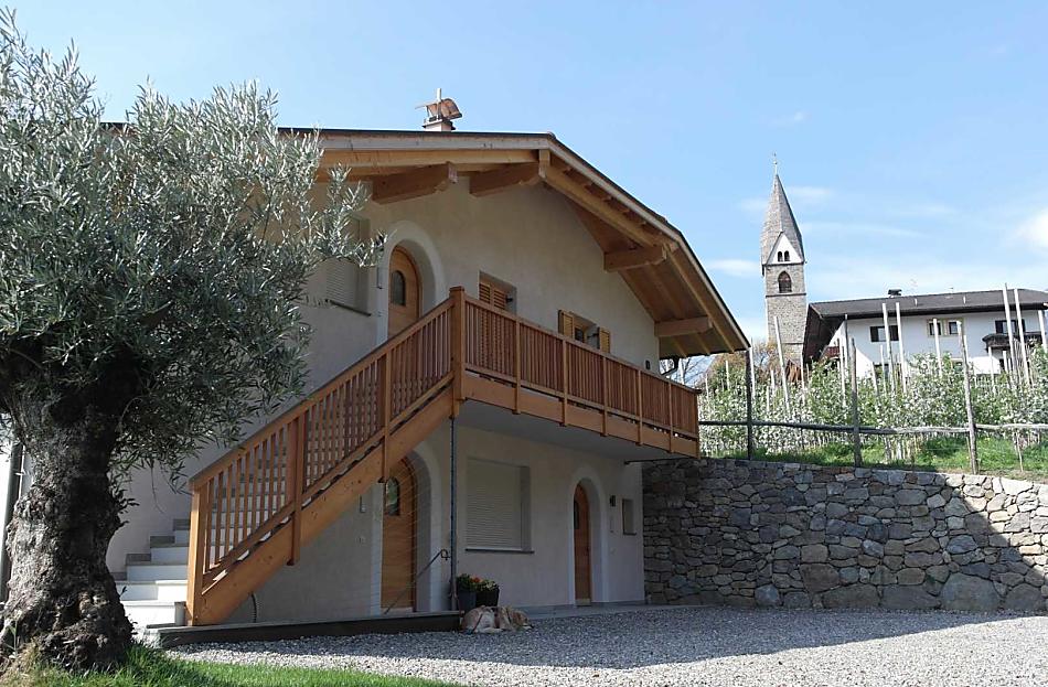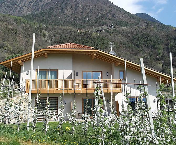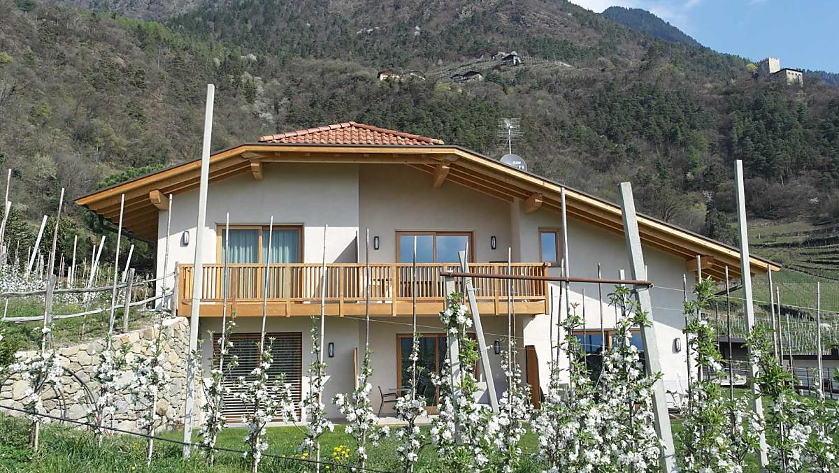 We are in a sunny and quiet hillside location with a dream view of Dorf Tirol, Meran and the surrounding mountains. The city bus stop is just below the house, the "Ruster-Keller" restaurant is 200 m away and the well-known Algunder Waalweg is only a 10-minute walk away.