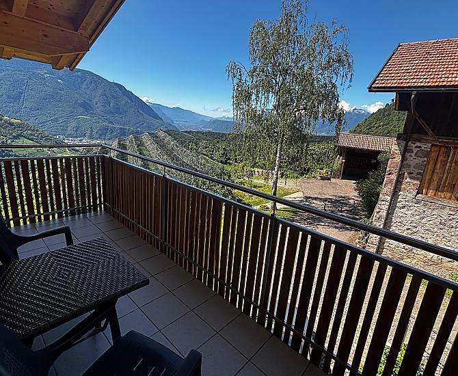 Experience South Tyrolean hospitality with us in the midst of fruit and wine growing; in a quiet location with a view of the city of Bolzano and Überetsch.