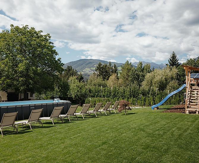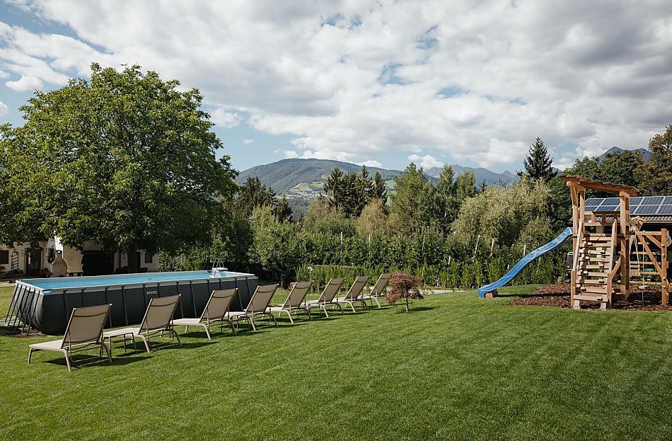 In the heart of South Tyrol, on the sunny apple-growing plateau of Natz-Schabs, lies Plattnerhof Viums. Situated in the quiet village of Viums, the farm offers the ideal conditions for relaxation away from the hustle and bustle of town. Guests have access to a beautiful sunbathing lawn, a pool for refreshment and a children's playground for the little ones.