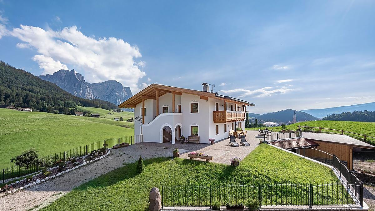Enjoy your holiday at the newly built Plieghof in a quiet, sunny location with a beautiful panoramic view of the picturesque village of Kastelruth and the surrounding area. Here at the Plieghof with its dairy farm, you will experience direct contact with our large and small animals. Our Plieghof is located directly above Kastelruth at 1,110 meters in the middle of the Dolomites. With the Alpe di Siusi and the Schlern-Rosengarten Nature Park to the south, wonderful hiking and skiing areas are right on the doorstep.