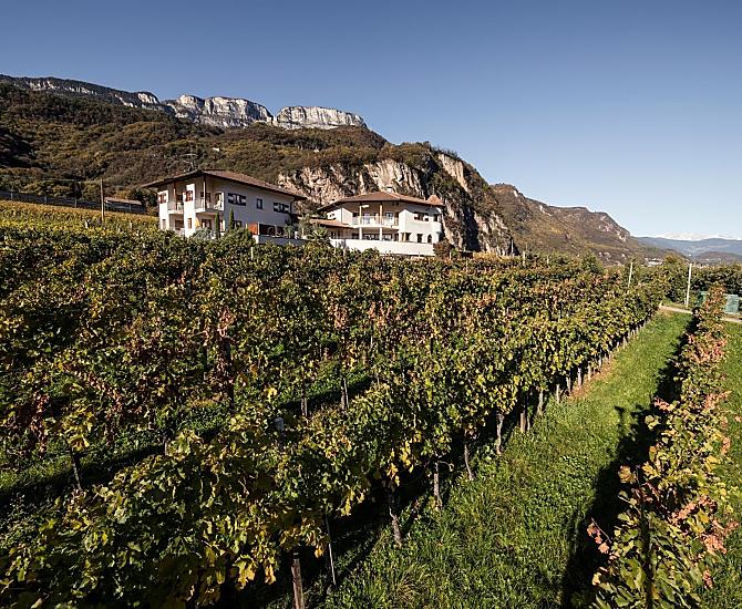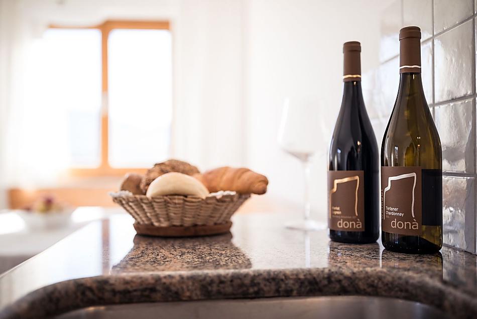 Our winery with a private winery was rebuilt in 2004. We offer four holiday apartments surrounded by vineyards with a fantastic view of the Dolomites, all furnished with local natural wood. We, the Doná family, cultivate the vines on the farm and are proud of our wine production. The whole family is involved in the harvest and bottling on the farm. We are always very happy to taste the wines with our guests. We maintain tradition and love to work and live in harmony with nature. South Tyrol is our home, home is a feeling and that is particularly important to us.