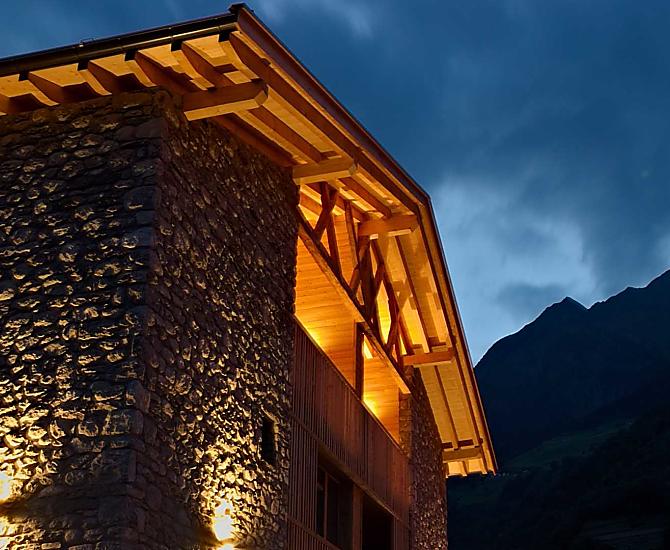 Our organic fruit farm with the renovated barn is romantically situated in the midst of the apple orchards and protected by the impressive mountain scenery of the Texel Group Nature Park, in a quiet, sun-drenched location on the edge of the picturesque village of Partschins.