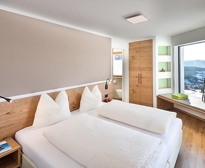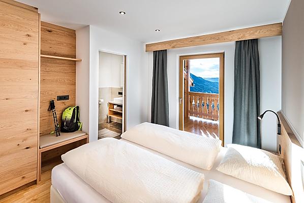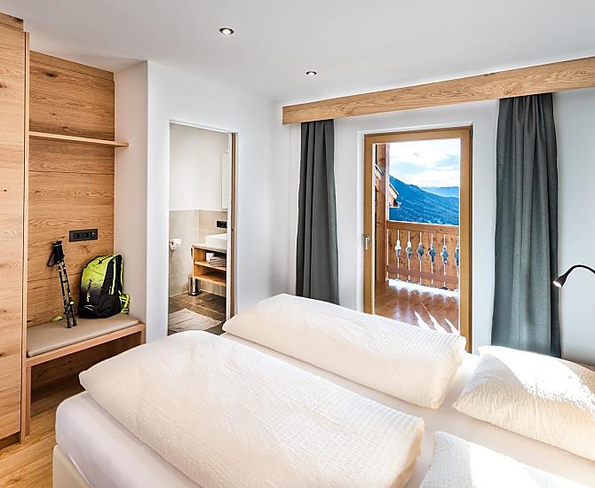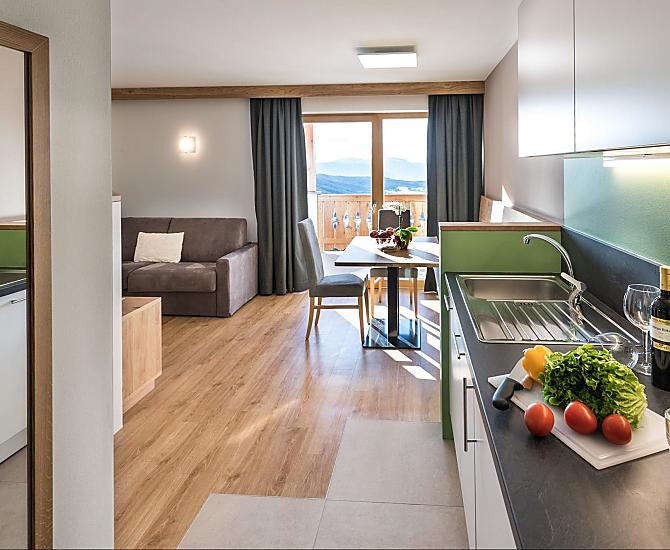 The Putzerhof is located at 1,150 m in the St.Valentin district. Surrounded by a breathtaking mountain backdrop, in a very sunny location and surrounded by green meadows, our farm is an ideal starting point for your vacation days at any time of the year. With us you can experience nature with all your senses and enjoy your holiday in the Schlern area. Our newly built apartments for 2 to 6 people are furnished in a modern, comfortable style. They are an ideal holiday destination for couples and families. From the balcony you can enjoy a wonderful view of the Schlern, the Alpine panorama and the village of Seis. On request, a breakfast made from farm products such as free-range eggs, milk, seasonal fruit and vegetables, syrup, fruit spreads and much more can be served to you.