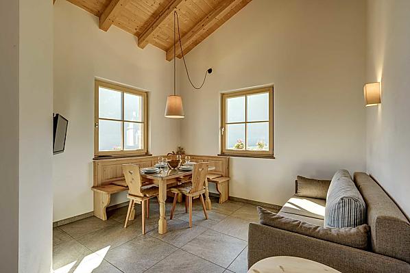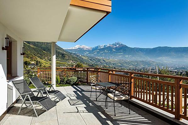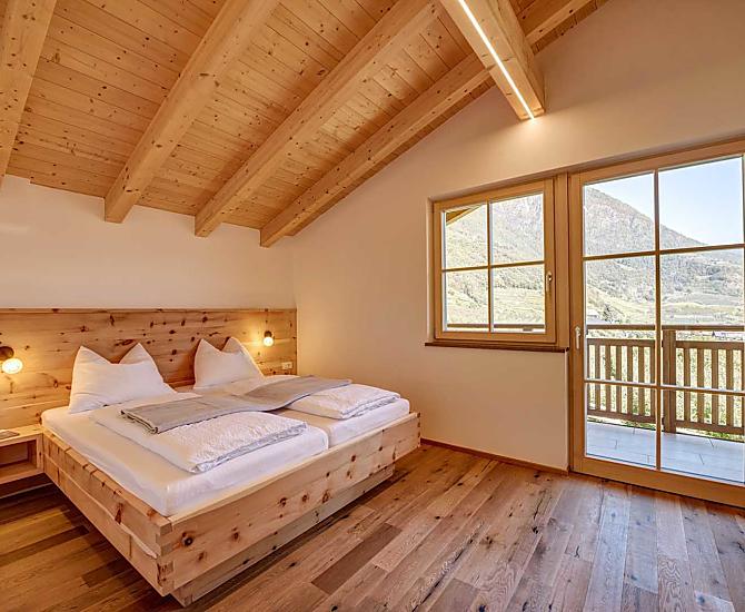 South Tyrol - Holidays in a sunny panoramic location at the foot of the Texel Group Nature Park. Contemporary, natural living in eco-friendly holiday apartments, relaxing by the pool, hiking and biking directly from the farm. Authentic and family friendly. Dogs welcome.