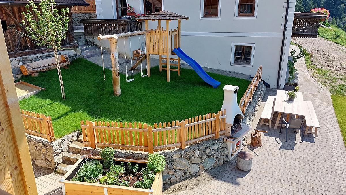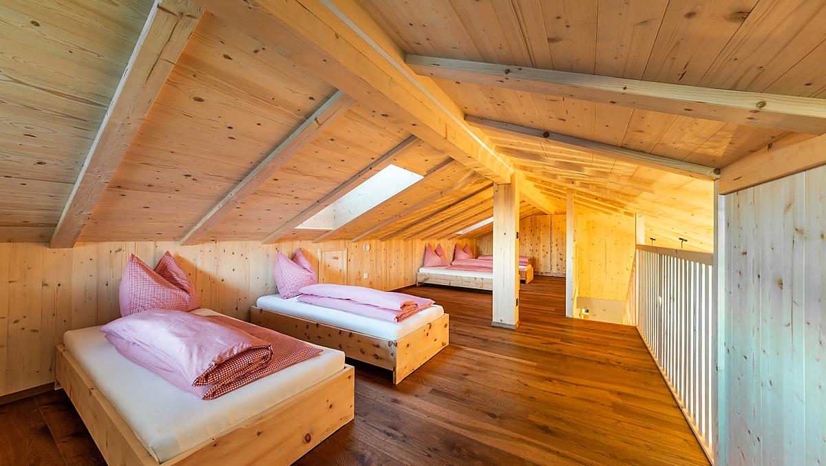 Experience pure nature on our idyllic Ratscheinerhof farm in Latzfons! Here with us you can enjoy peace and quiet, recover from everyday stress and switch off. There is also a lot for children to discover and experience here. Our farm is beautifully situated at 1,300 m above sea level. We run a dairy farm and produce healthy hay milk. A beautiful, newly built holiday home with two holiday apartments and a product sampling room with sales corner awaits you. During construction, we placed great value on natural materials. The apartment on the upper floor and the farm shop have been built completely in wood. Our holiday home is surrounded by green meadows in a very sunny location with a wonderful view of the valley and mountains. Our farm has a rustic grain mill, which guests can view on a farm tour. Our farm makes the ideal base for going on long hikes at any time of year.