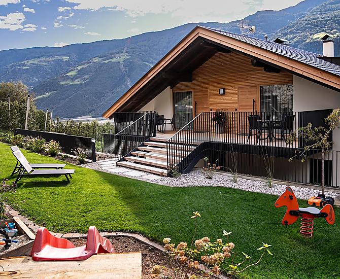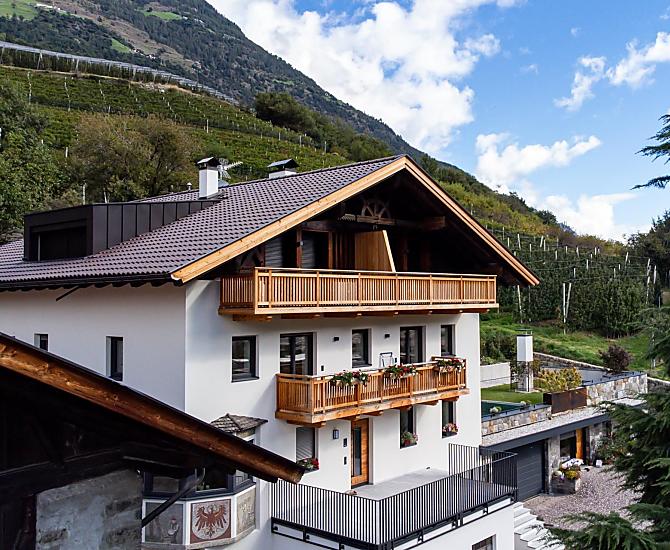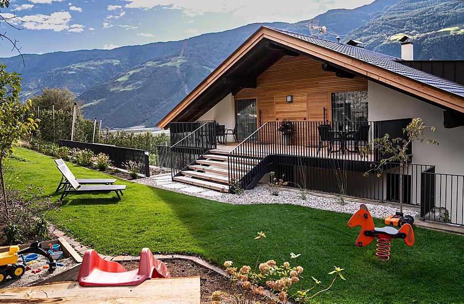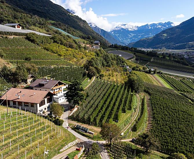 Feel the power of nature. Explore the idyllic landscape and the unique mountain world. Enjoy the marvellous view over the village of Naturns, the Alpine-Mediterranean climate and our hospitality. Our farm, Rautnerhof, surrounded by orchards and vineyards, is your peaceful holiday retreat. Let us surprise you and experience farm life, living traditions and pure relaxation. On request, we will spoil you with a lovingly prepared breakfast with farm produce and give you an exciting insight into farming during a tour of the farm. Our younger guests love our animals and the great playground on the sunny lawn. We look forward to welcoming you!
