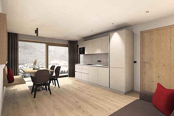 Our farm is in a good spot with wonderful views on the sunny side above the village. Within a few minutes' walk of the ski lifts and village centre and ideally placed for walks as well as bike and ski tours. There is a bus stop for ski and city buses right outside the farm. The modern, carefully arranged holiday flats and the great sunbathing meadwos are perfect for lingering on. We care about sustainability and make sure that renewable energy sources provide our flats with energy (photovoltaic and heat pump).