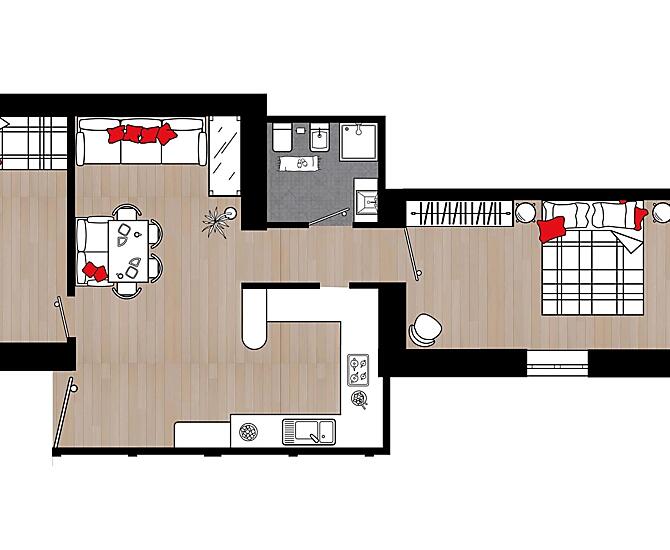 2-4 persons (2 fixed beds) 44m²