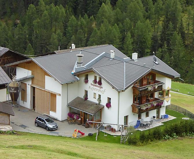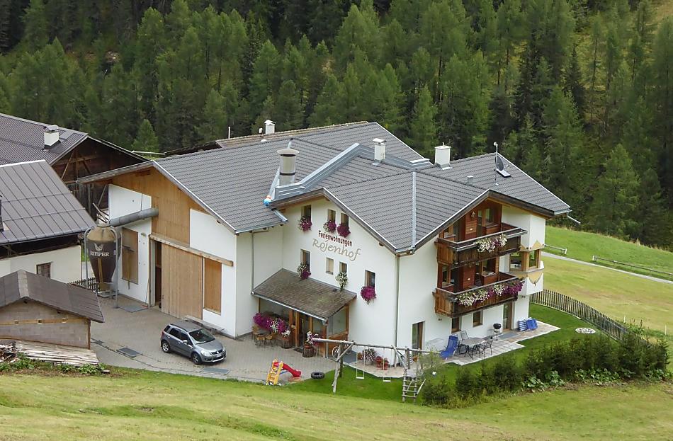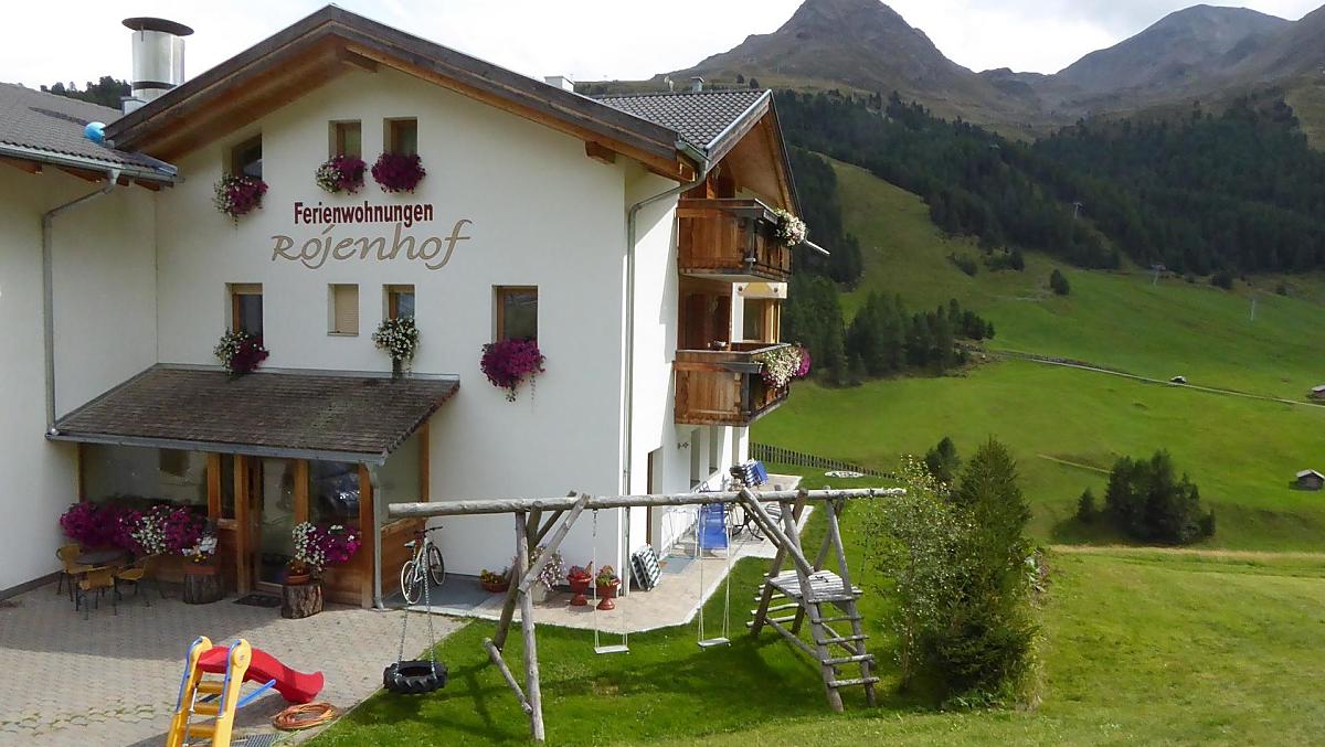 The Rojental valley branches off from the main valley at the northern end of the famous Reschensee Lake. In Reschen, turn towards the valley station of the Schöneben ski area. After you have passed the valley station, follow the road in the direction of Rojen, where you turn into the small village of Rojen approx. 200 m before the parking lot for the lifts. In Rojen drive along the steep road past the inn and then turn left, where you will immediately discover our farm.