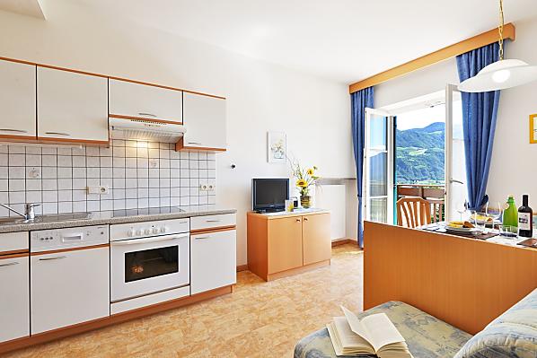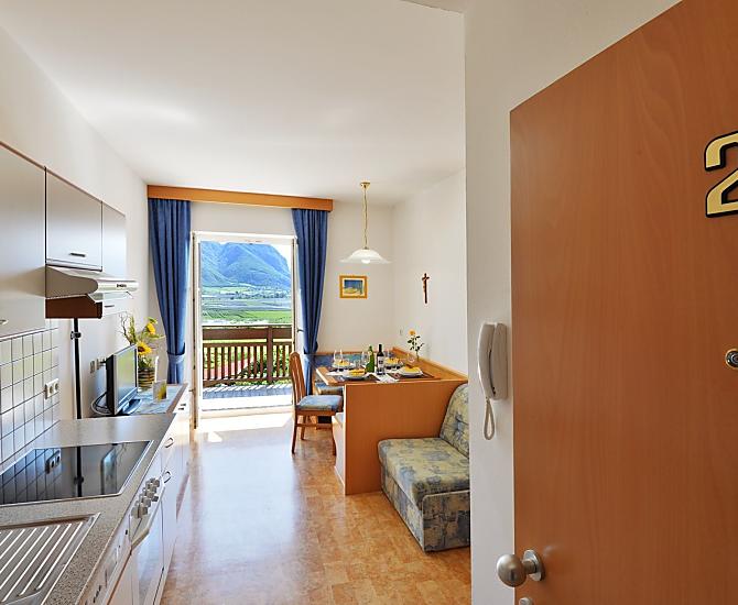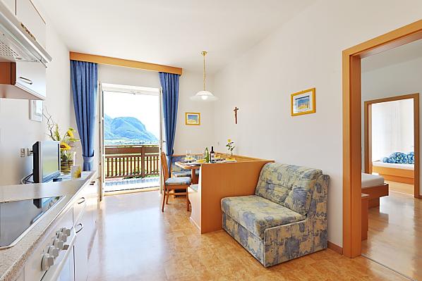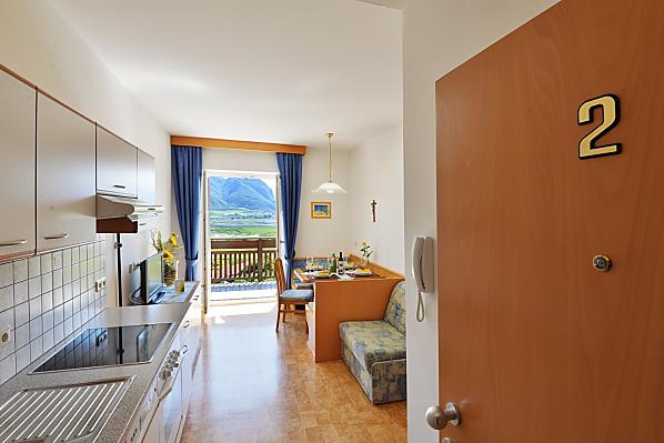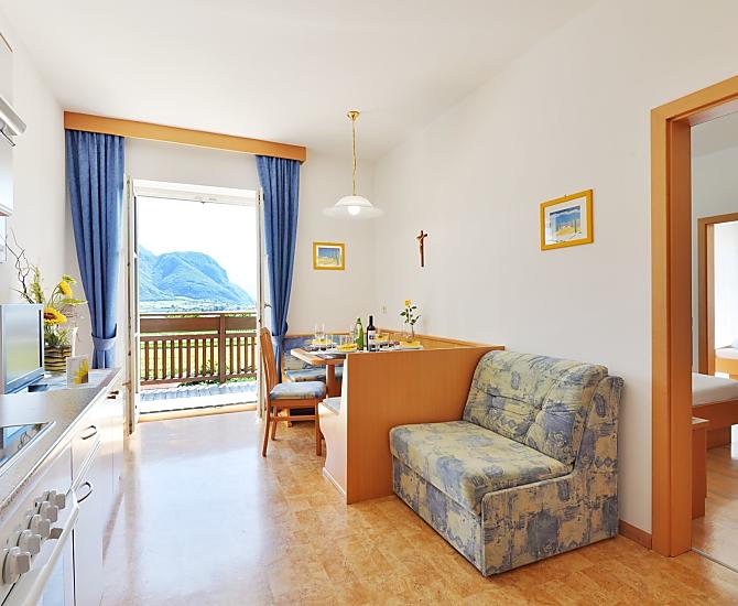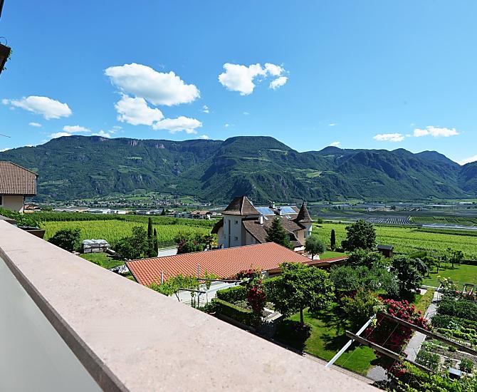 The tranquil resort of Andrian is located in the Etschtal valley on the Wine Route, between Bozen and Meran. Our farm offers spacious holiday apartments and rooms with the highest level of comfort and is in a sunny location, surrounded by orchards and vineyards, around 500 m from the town centre. The magnificent panoramic view of the Rosengarten massif invites you to relax on our lawn. Our herb and vegetable garden gives your kitchen the right taste for an unforgettable gourmet menu! Let yourself be pampered, our breakfast on wheels with many of our own products will convince you! You will find plenty of space for your car or bicycle in our spacious car park or in our underground car park.