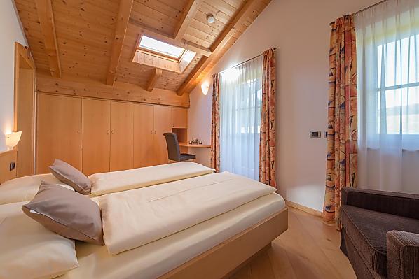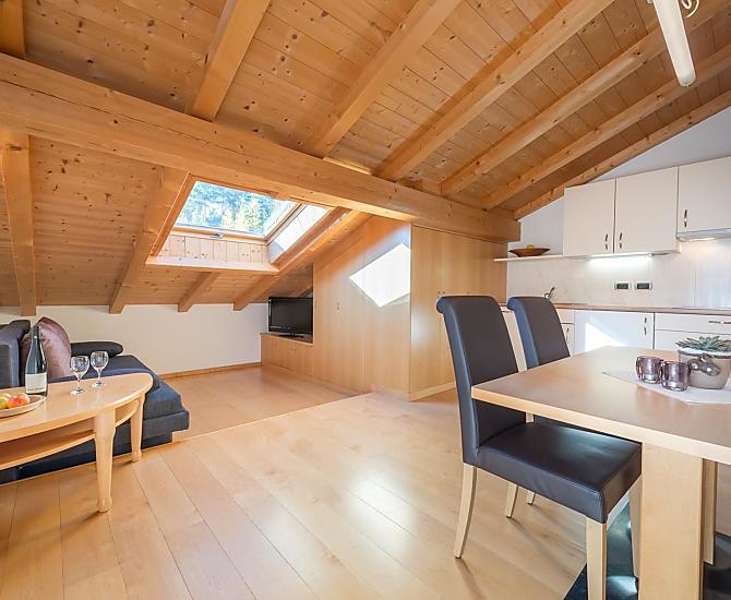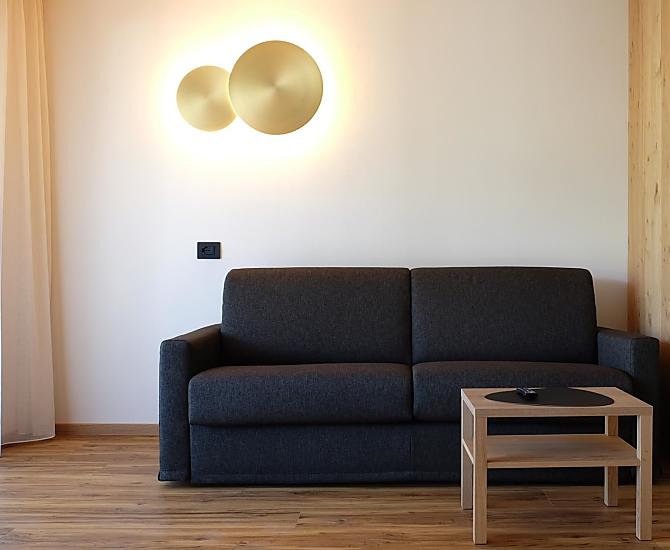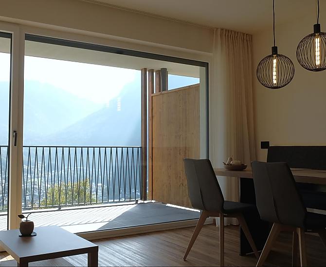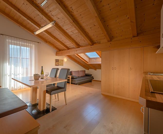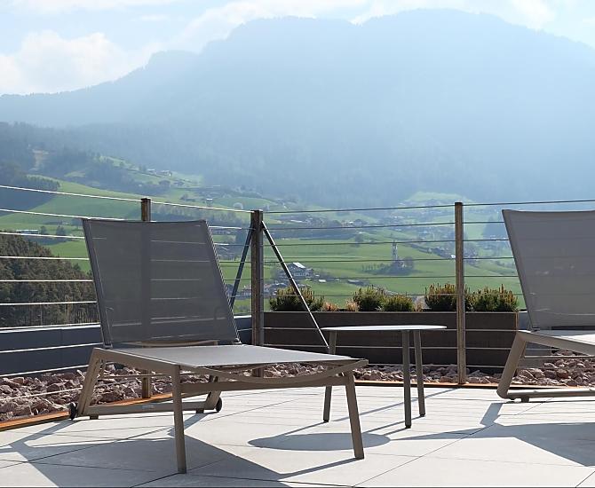 Runkhof farm is situated in a quiet and idyllic location above Seis. The holiday flats were newly built according to all the rules of architecture. The result is a modern residential complex surrounded by sheer nature with views of the Dolomites. The valley station for the cable car to the popular Seiser Alm ski and hiking area, the largest high Alpine pasture in Europe, is in the immediate vicinity. An attractive spot for those seeking relaxation, sports enthusiasts and nature lovers.
