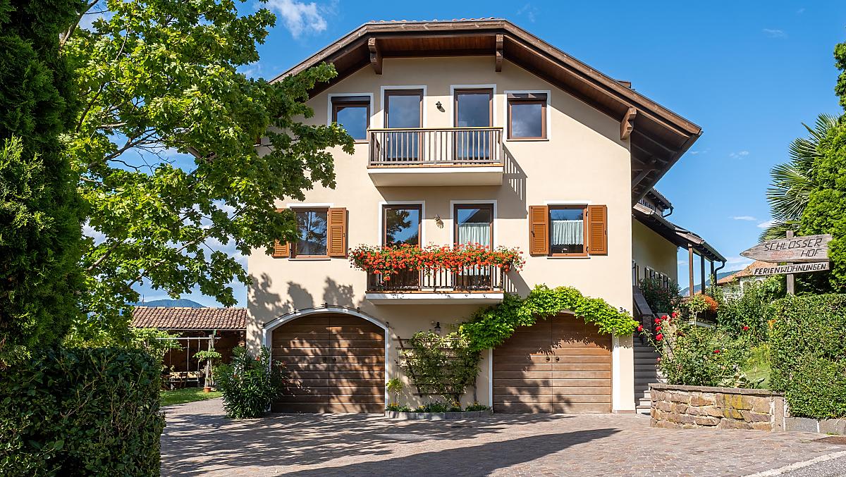 Our farm is located near the Montiggl lakes, surrounded by our own vineyards and orchards. The quiet location in the countryside and the impressive view over castles and palaces, over the entire Etschtal Valley to Meran, make our Schlosserhof so special. Our two holiday apartments are large, spacious and bright and combine Tyrolean cosiness with modern living comfort. A special feature that complements our children's playground is our wine barrel house, a wine barrel that has been converted into a house for children (and parents too), equipped with a table and benches. In addition to the sunbathing lawn, our courtyard also has a wooden table and a wooden bench under the vine arbor, where you can sit comfortably and relax.