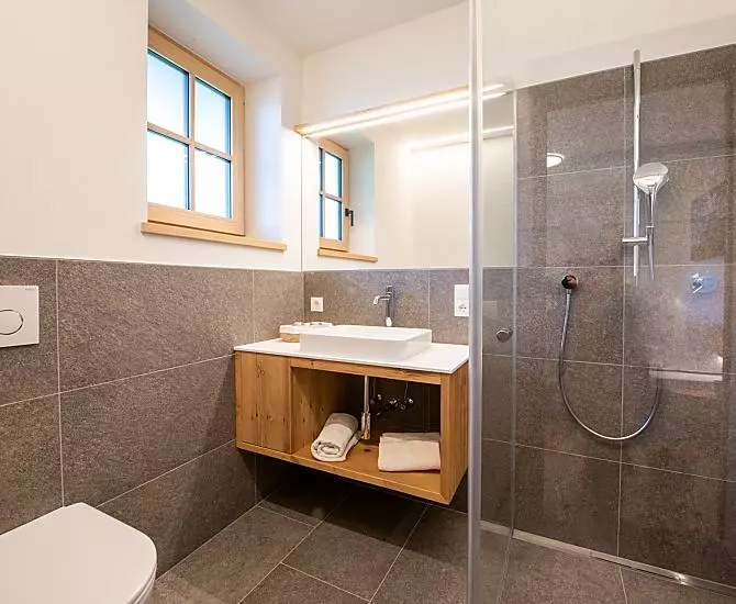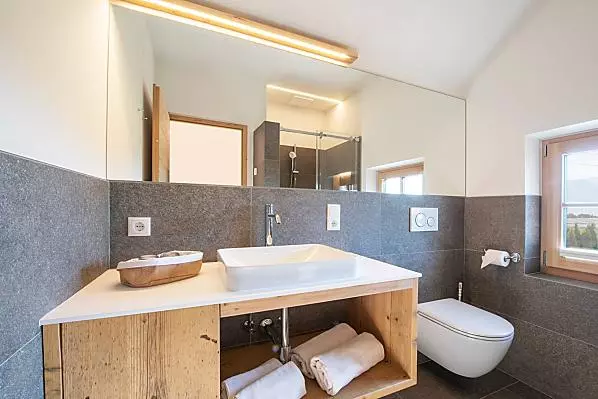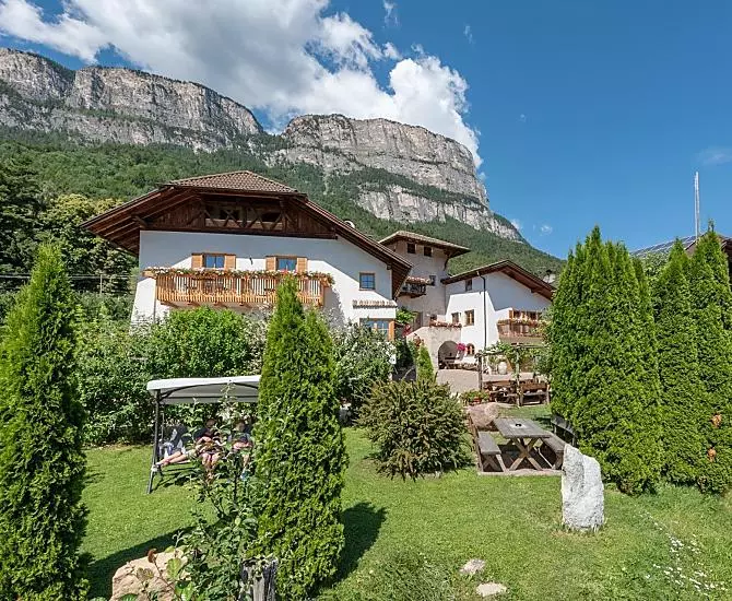Welcome to the Schmalzerhof! Our farm is idyllically situated at 700 m asl. between apple orchards and high mountains in Perdonig near Eppan in the south of South Tyrol. A real holiday paradise for families with cozy apartments and countless leisure and excursion options in all directions and for all preferences. Hiking, biking, culture, experiencing farm life up close, untouched nature - and all of that right outside the door. Because to explore the most beautiful corners of South Tyrol, you are always on the right track at the Schmalzerhof: to the nearest lake or castle, up the mountain or down into the city. The apartments at the Schmalzerhof are the ideal place to retreat to at the end of an eventful day to relax and end the day in a relaxed manner. The pleasant ambience creates the right atmosphere: a successful mixture of modern furnishings and traditional courtyard walls. In addition, a lot of peace and a unique panoramic view.