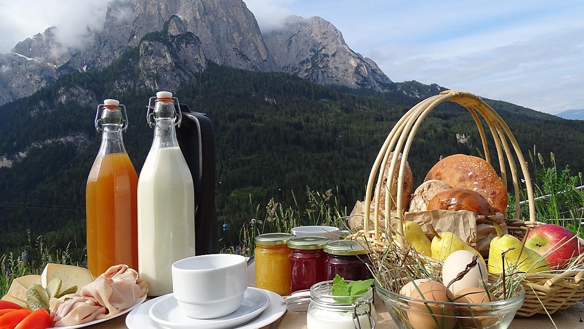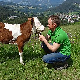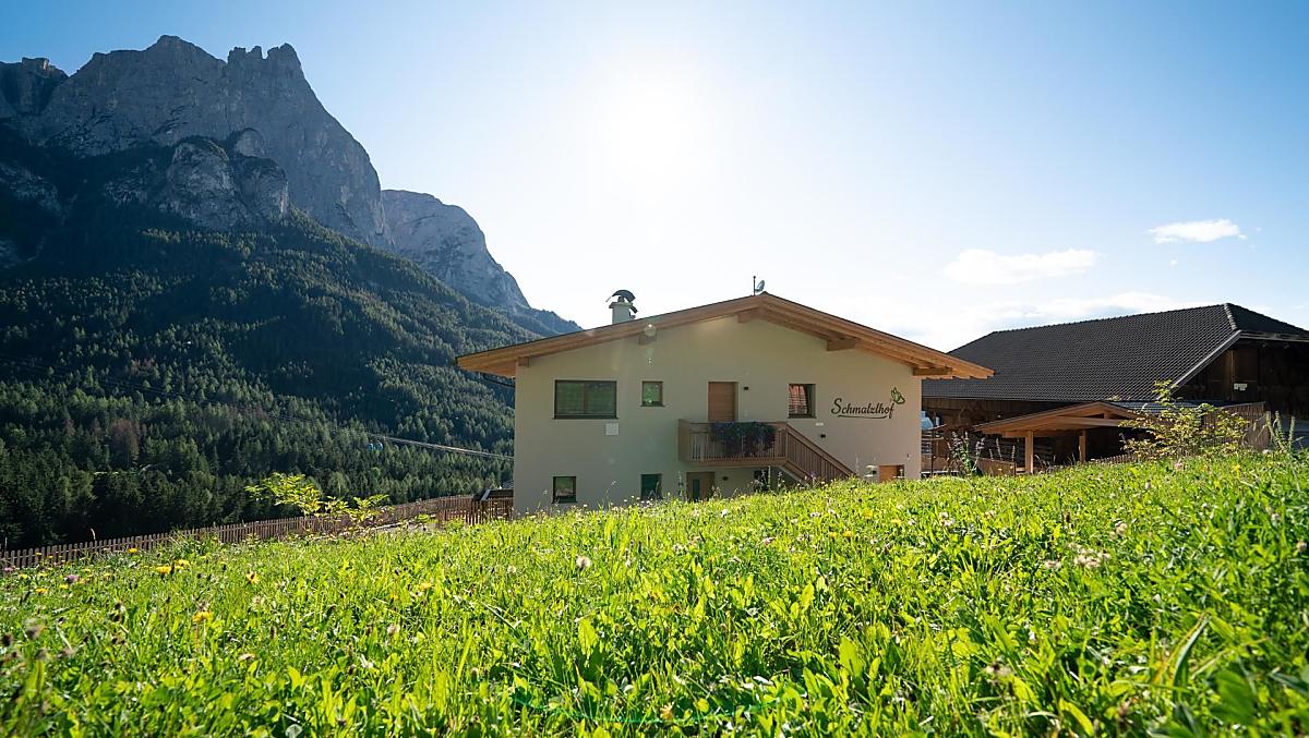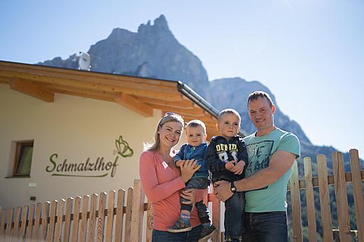 We live on our farm in the heart of South Tyrol, Oswald and Angelika, with our sons Samuel and Matthias and with our Simmental dairy cows, calves and calves. They share the barn with the pygmy goats and the chickens. Our cats also often come to visit the stable, especially when they want Oswald to feed them. We work a total of 3 hectares of meadows on the farm, 3 hectares on the Seiser Alm as property and 4 hectares as a lease. This is how we get most of the feed for our animals. Since 2021 we have had three holiday apartments of different sizes in our new farmhouse. All three apartments face south and offer a wonderful view of the Schlern. To the south-west you can see the meadows of the farm, to the east you can see the forests and towards the Seiser Alm. From our farm, our dear guests can start numerous hikes or relax on the sun terrace and enjoy nature.