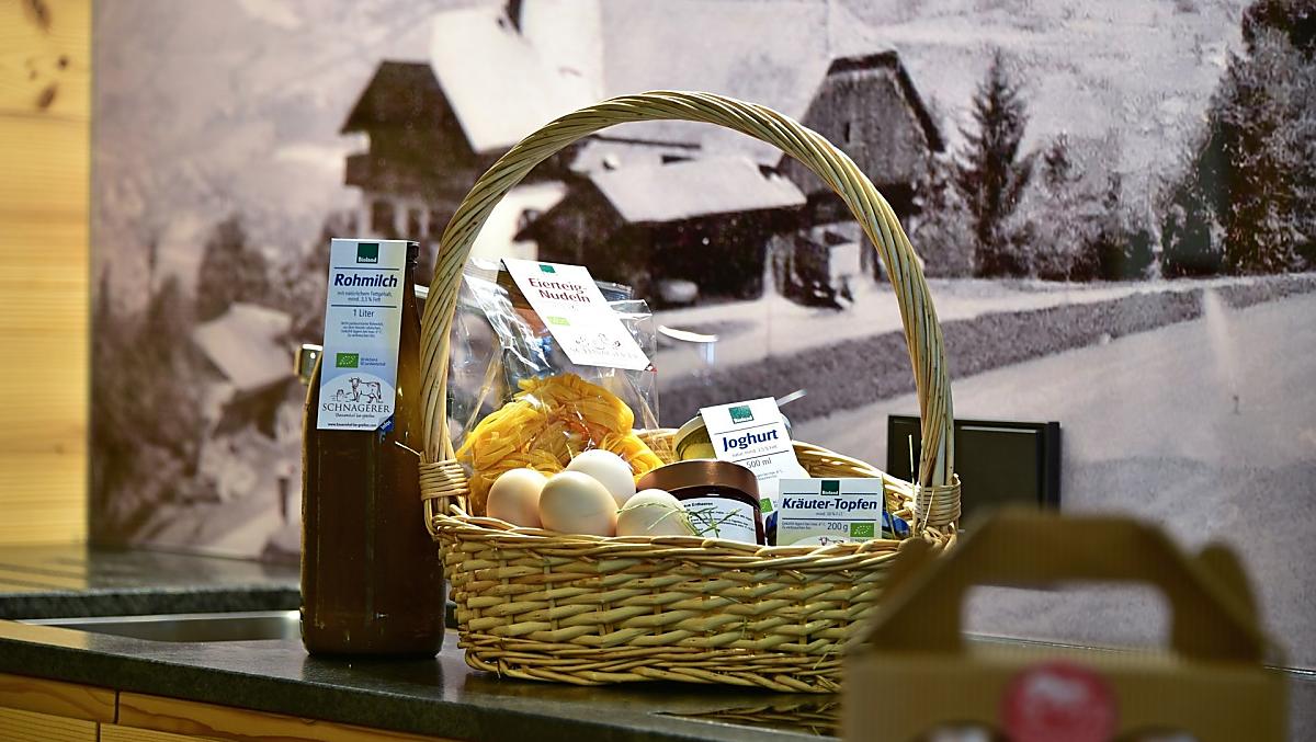 On our organic farm we produce high-quality foods like eggs, milk, yoghurt, curd cheese and meat, as well as jams and cordials, fruit, vegetables and herbs. We will spoil you with our breakfast buffet in the dining room with our home-grown produce. During the evening stable time our guests will gain insight into everyday working life on the farm. We milk the cows, take care of the pigs, chickens and cats, collect eggs, jump into the hay and stroke the animals.