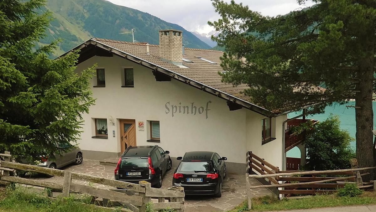At the entrance to Reschen, at the first houses, turn right, follow the signs for the Schöneben ski area and continue to the opposite shore of the lake. There past the ski lift, go up the mountain for almost 1.7 km and at the 3rd hairpin bend, following the blue town signs for St. Valentin, turn left and drive slightly downhill through the forest. After 1.6 km, at the junction on the left, the last 100 m descend down to the Spinhof.