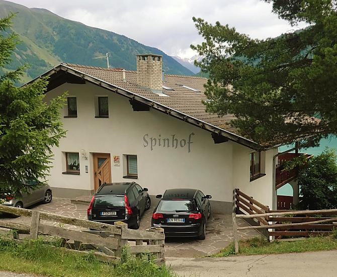 At the end of the village of St. Valentin, 50 m after the traffic lights, leave the main road on the left. Here you will already find the first sign to Spinhof. After 300 m, at the fork after the bridge, continue on the right, lower road (2nd signpost Spinhof). Go along on the uphill road past the hamlet of Kaschon and then on the west side of Lake Reschen along the forest to the junction after 2.8 km (3rd signpost for Spinhof). Here the last 200 m descend to the right down to the Spinhof.