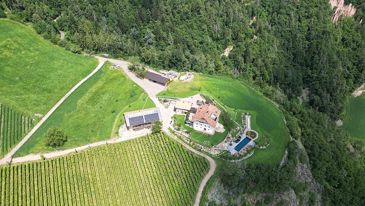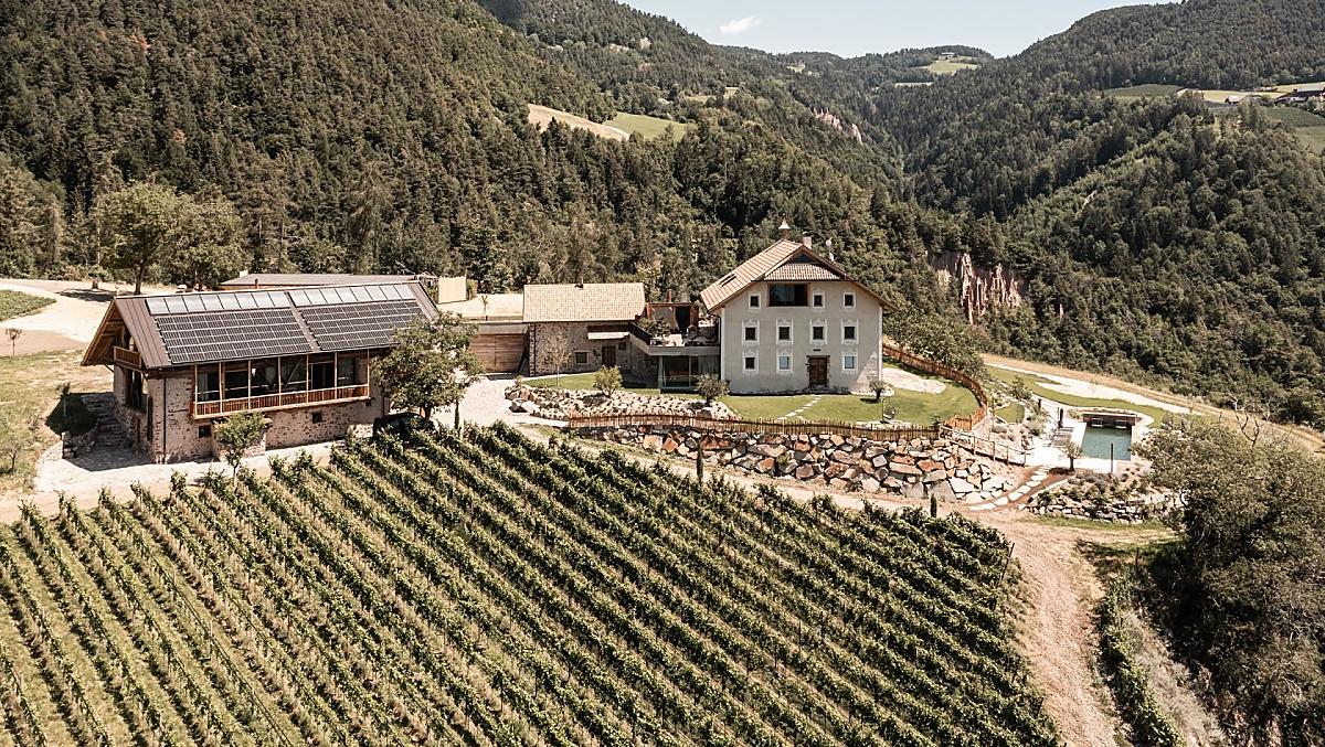 Spornberg tells stories. Of a vanished aristocratic residence and manorial estate from the Middle Ages. Of the courage to transform the historical farm into a winery and retreat. Surrounded by vineyards, meadows and forest. Three spacious flats to ensure privacy, a barn for socialising and a large garden with an organic pool for relaxation. With a magnificent view of Bozen, the Ritten earth pyramids and the mountains. Edgy, somewhat wild and free. But also stable and familiar. For people who want to enjoy their holiday without sticking to a schedule or dress code.