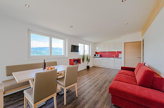 We have two holiday apartments in our new farmhouse. Another holiday apartment and 2 large rooms suites are located in our 400-year-old farmhouse, which we have renovated for you (2 minutes' walk from the farm).