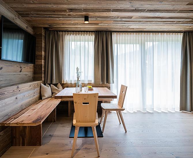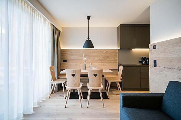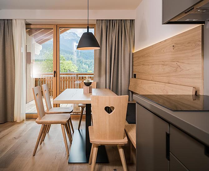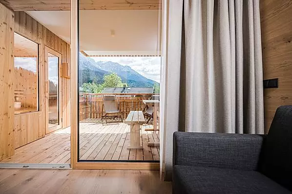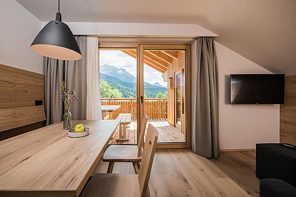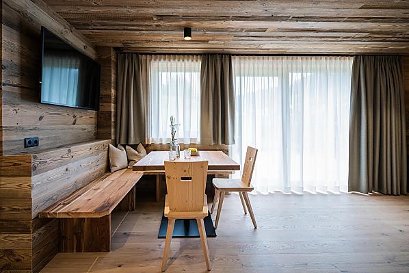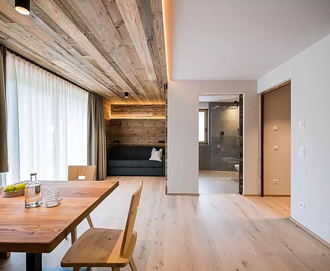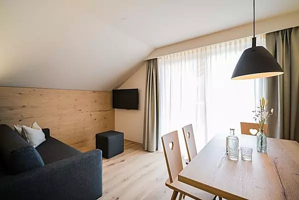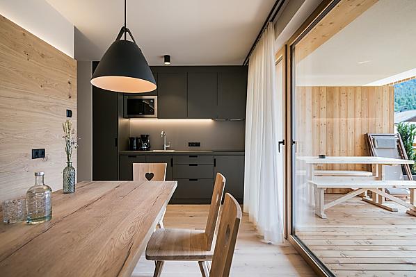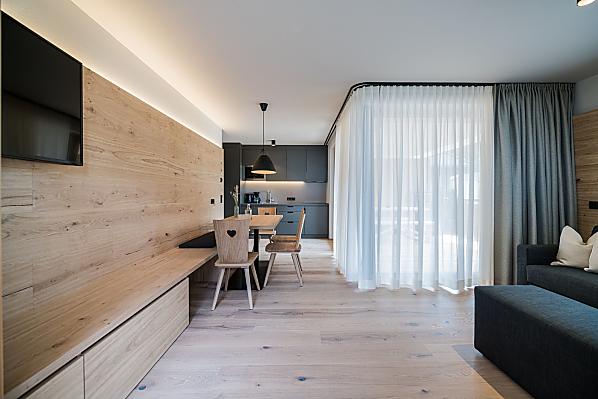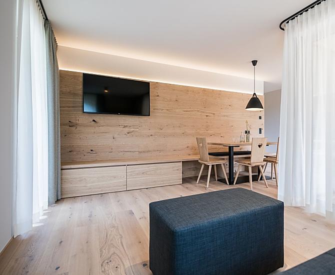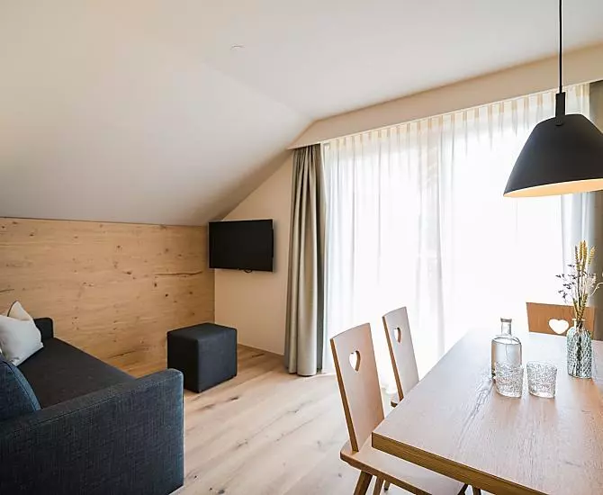 A resort in South Tyrol for magic moments, where comfort, nature, tradition and modernity come together. Located in Vierschach near Innichen, in the middle of the imposing Dolomites, your holiday will be a unique experience. Be it hiking, biking or on the ski slopes, great outdoor activities all year round await you directly from the farm. Apartment suites furnished to high quality provide space for the whole family. Enjoy the retreats in the loggia or in the garden and relax in the private Finnish outdoor sauna made of pine wood. The natural materials, like wood from our own forest and the clear style make for a sustainable and healthy living environment. Local products come directly from our farm.