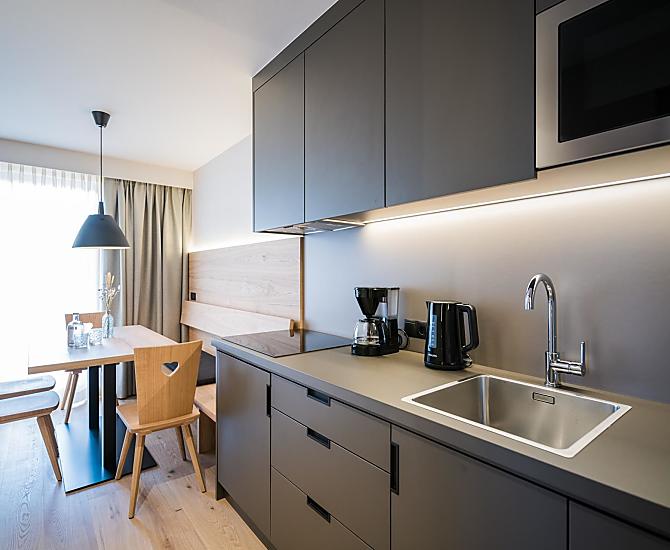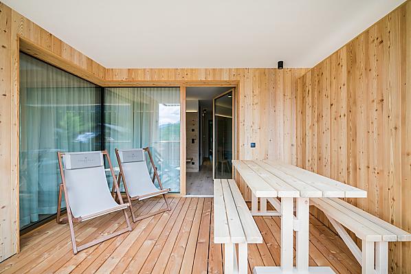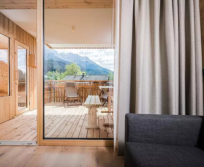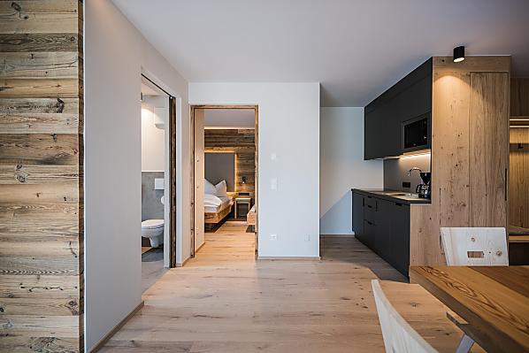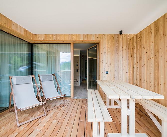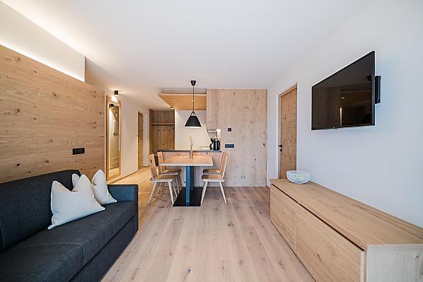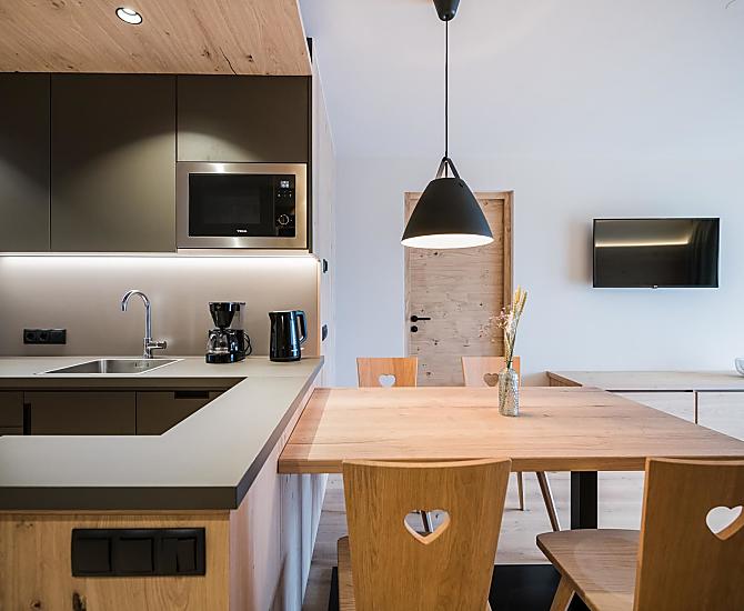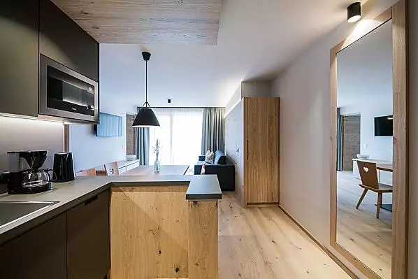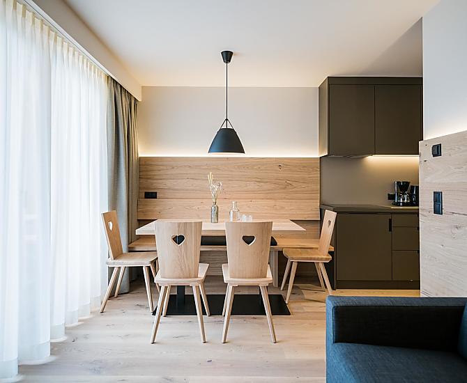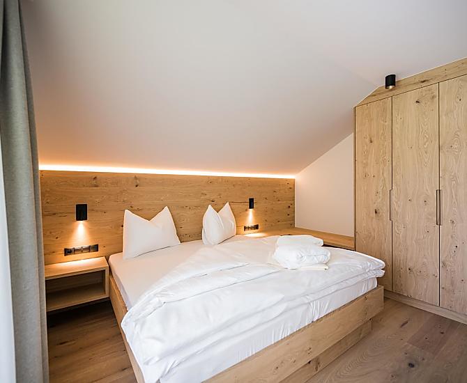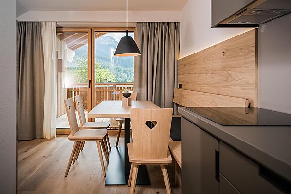 A resort in South Tyrol for magic moments, where comfort, nature, tradition and modernity come together. Located in Vierschach near Innichen, in the middle of the imposing Dolomites, your holiday will be a unique experience. Be it hiking, biking or on the ski slopes, great outdoor activities all year round await you directly from the farm. Apartment suites furnished to high quality provide space for the whole family. Enjoy the retreats in the loggia or in the garden and relax in the private Finnish outdoor sauna made of pine wood. The natural materials, like wood from our own forest and the clear style make for a sustainable and healthy living environment. Local products come directly from our farm.