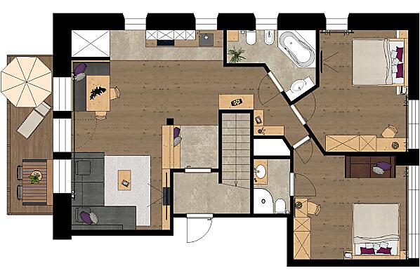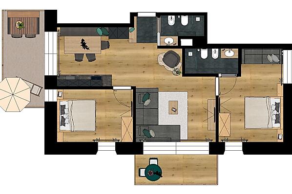 4-7 persons (5 fixed beds) 85m²