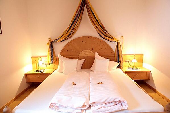 Sunnleitn is located 2 km above St. Valentin and offers a wonderful panoramic view of the Haidersee and Reschensee lakes and the glaciers of the Ortler group.