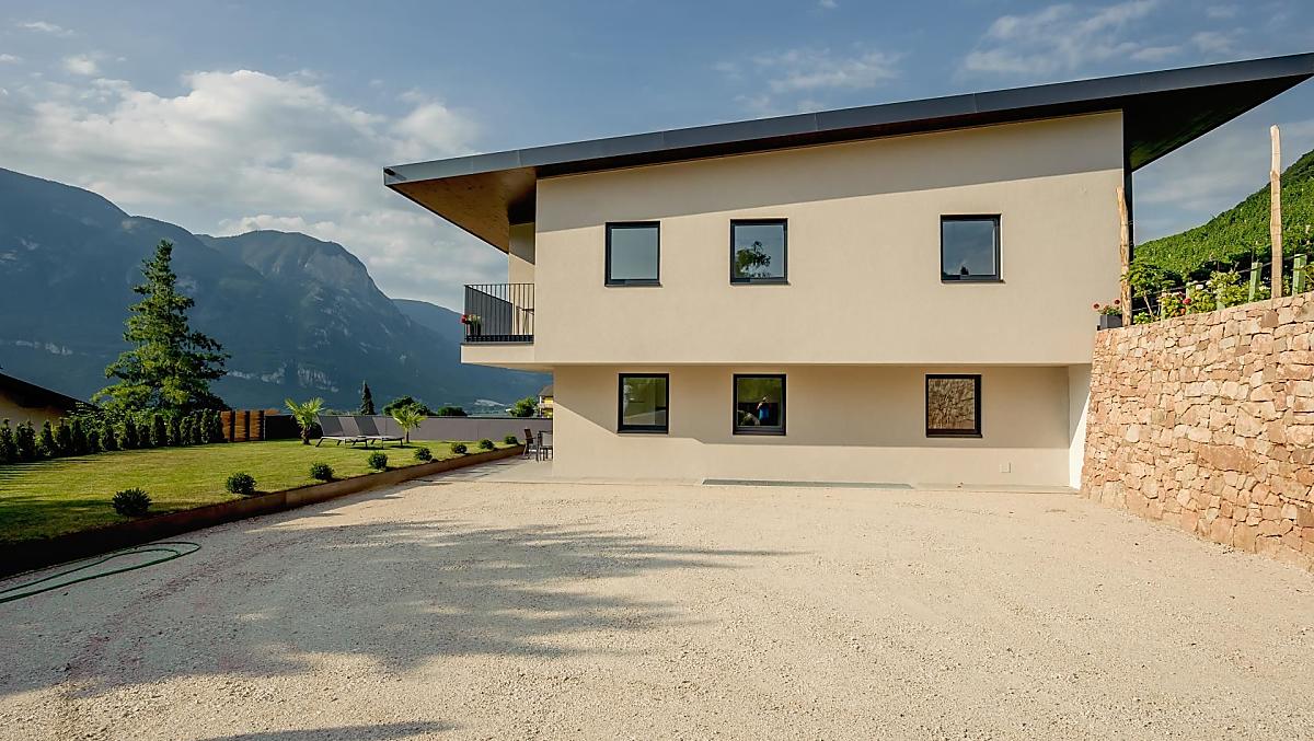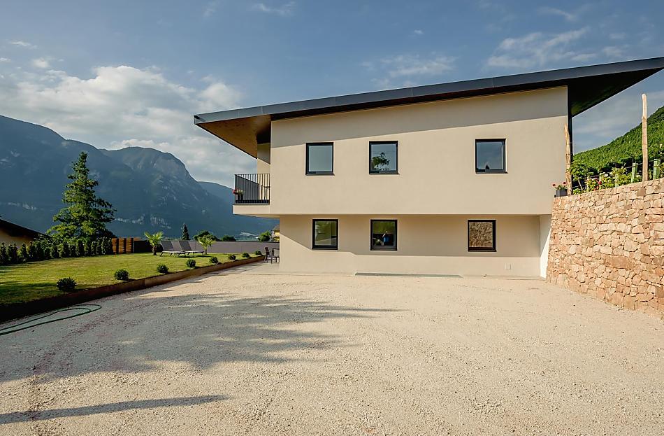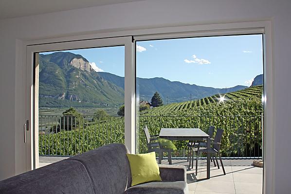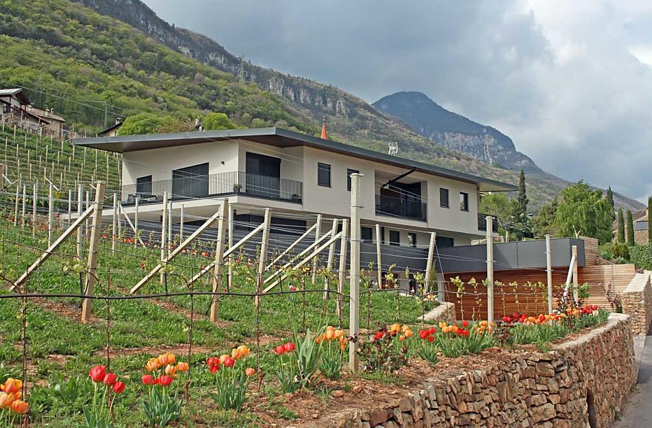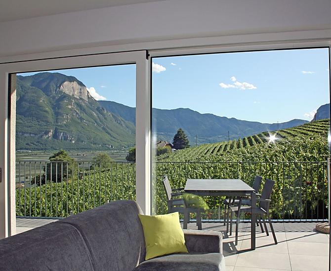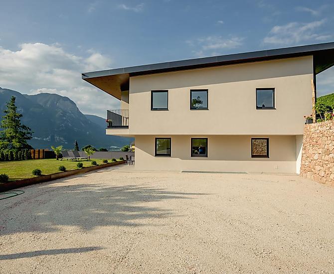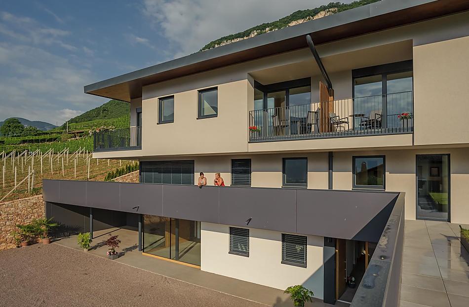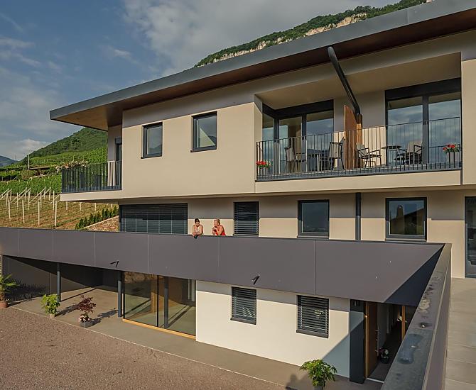The Tholr Hof is a newly built farmstead with five exclusive holiday apartments, which enables modern holidays in a Mediterranean panoramic location in the middle of the vineyards and in the region of Lake Kaltern in a central location in the South Tyrolean lowlands. In the Klimahaus you can expect spacious holiday apartments to feel good in. We are a fruit and wine-growing business that we work on with our own family. Tholr, as our surname is called in the South Tyrolean dialect, comes from our surname Thaler, that's us, Elfriede, Norbert, Michi and Willi Thaler. You have the best opportunities for hiking, cycling, swimming, for excursions to the Dolomites, to Lake Garda, for shopping in Bozen and Meran, as well as good connections to the public transport network.