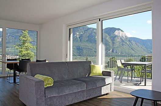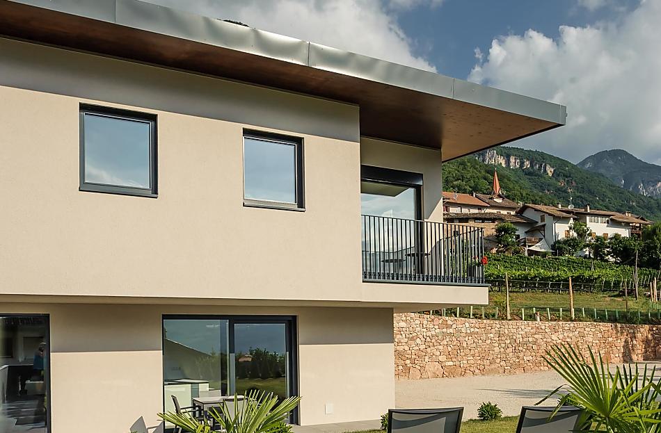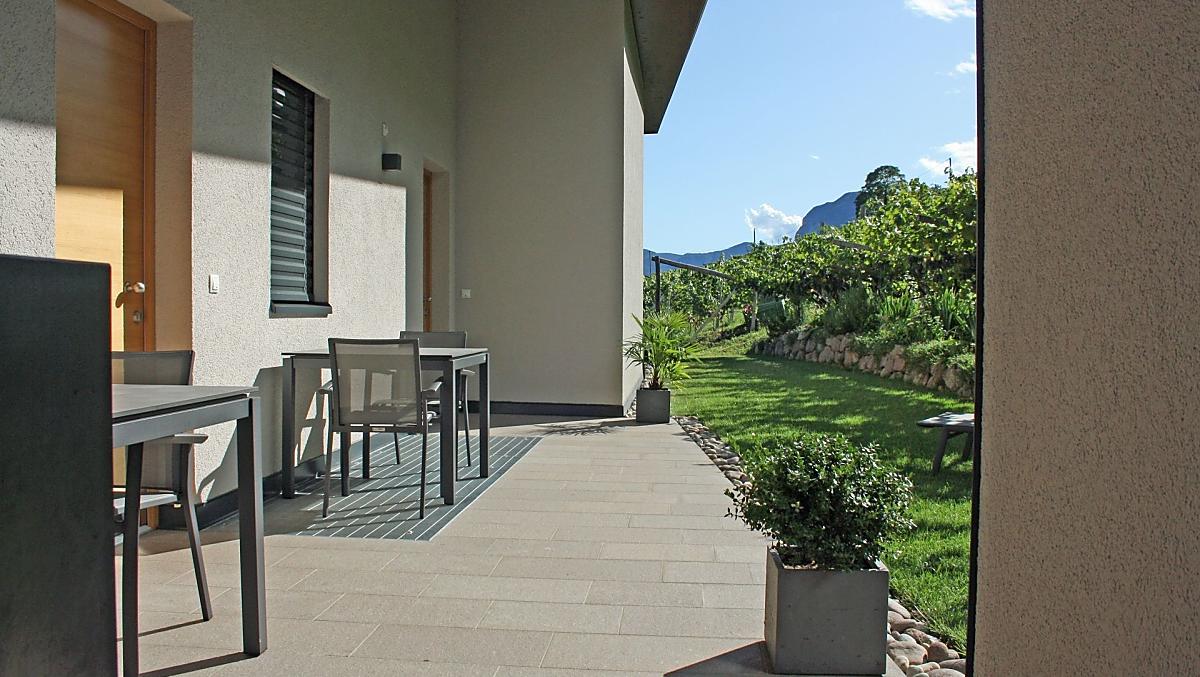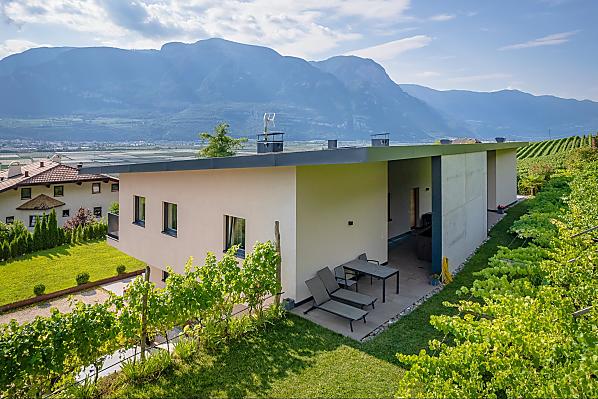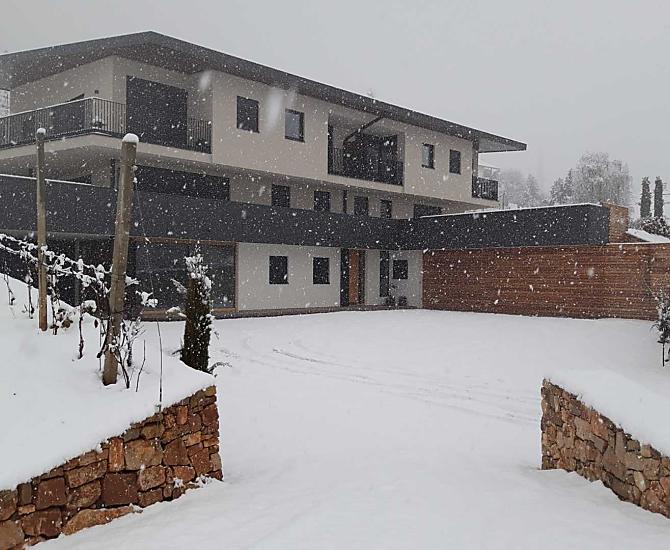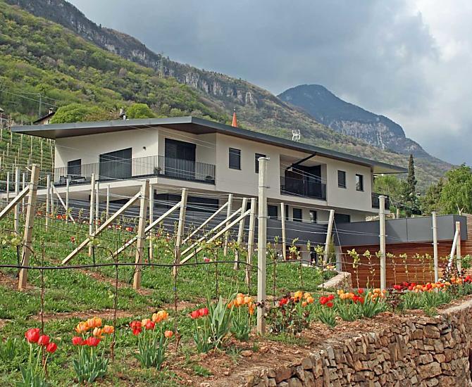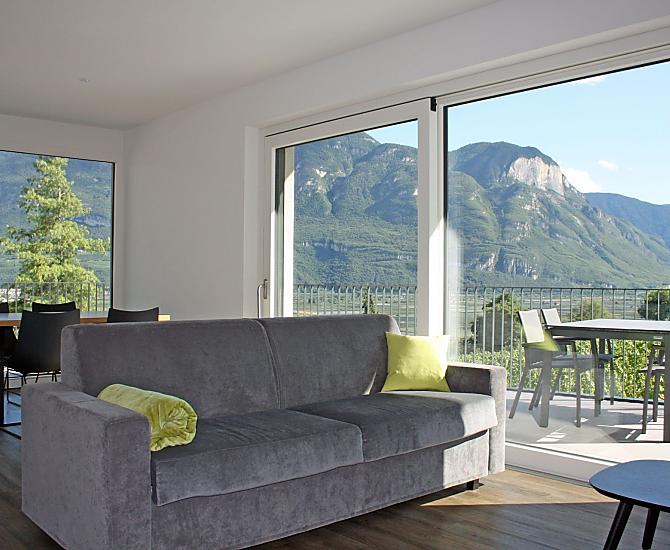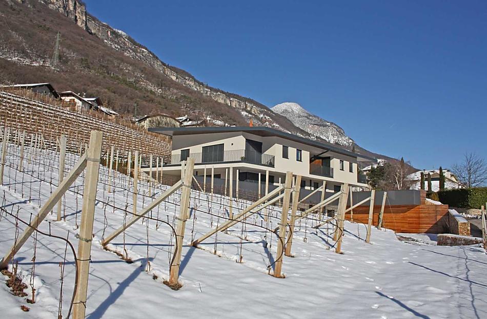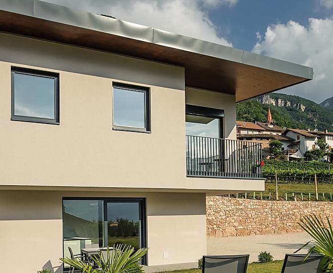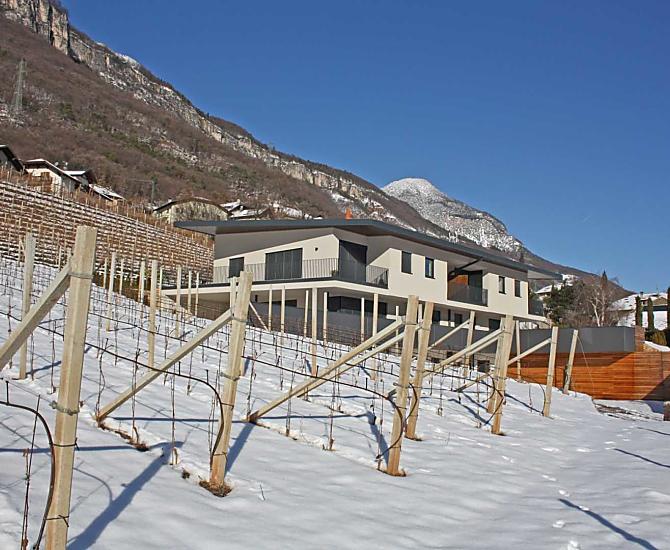 The Tholr Hof is a newly built farmstead with five exclusive holiday apartments, which enables modern holidays in a Mediterranean panoramic location in the middle of the vineyards and in the region of Lake Kaltern in a central location in the South Tyrolean lowlands. In the Klimahaus you can expect spacious holiday apartments to feel good in. We are a fruit and wine-growing business that we work on with our own family. Tholr, as our surname is called in the South Tyrolean dialect, comes from our surname Thaler, that's us, Elfriede, Norbert, Michi and Willi Thaler. You have the best opportunities for hiking, cycling, swimming, for excursions to the Dolomites, to Lake Garda, for shopping in Bozen and Meran, as well as good connections to the public transport network.