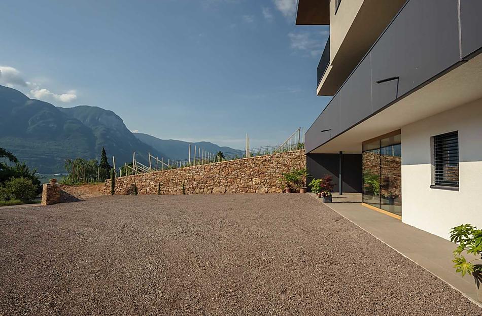 Via the A22 Brenner motorway, exit Neumarkt-Auer-Tramin. At the crossroads with the South Tyrolean Wine Route, turn left in the direction of Rungg and Kurtatsch, continue at St. Valentin's Church until after a long right-hand bend on the mountain side, you will see the turn-off to Rungg. On the left side you see our modern farm surrounded by the typical limestone walls.