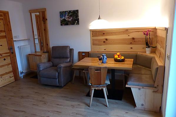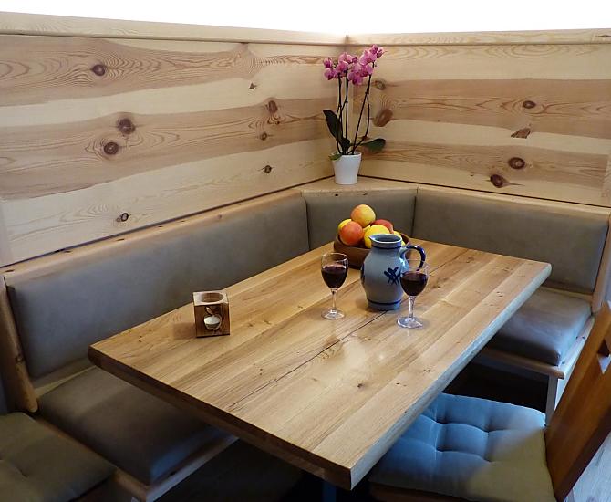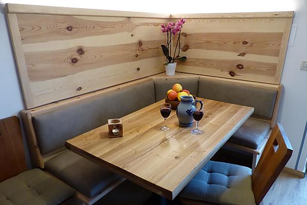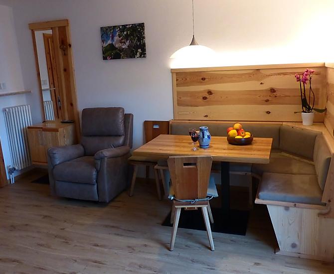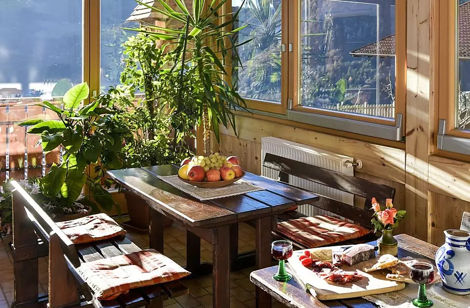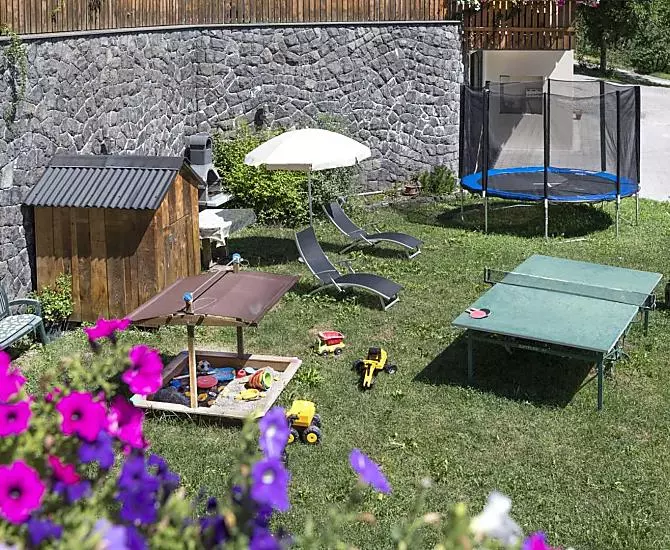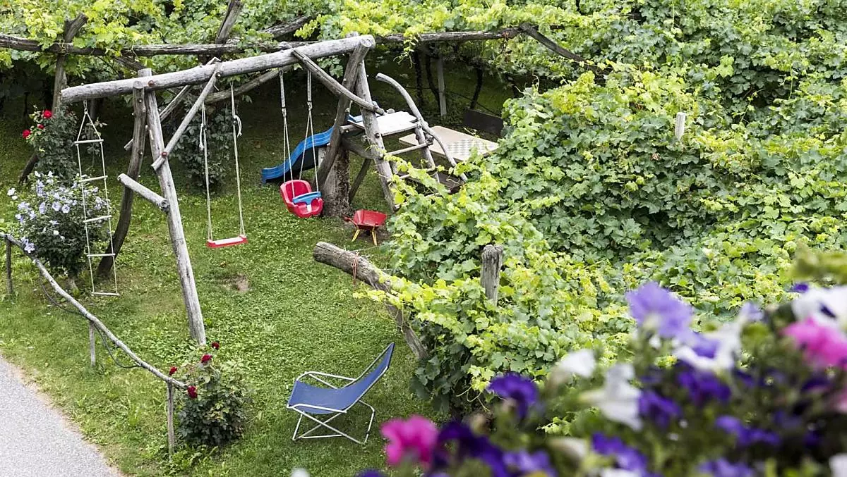 Our fruit farm is in a quiet and sunny location below Kastelruth, surrounded by cherry, wine and apple trees. We have a cozy lounge, a sunny terrace, a barbecue area and a large playground with a trampoline and lots of games such as table tennis and table football. Our sunbathing lawn, right next to the vines, provides rest and relaxation.