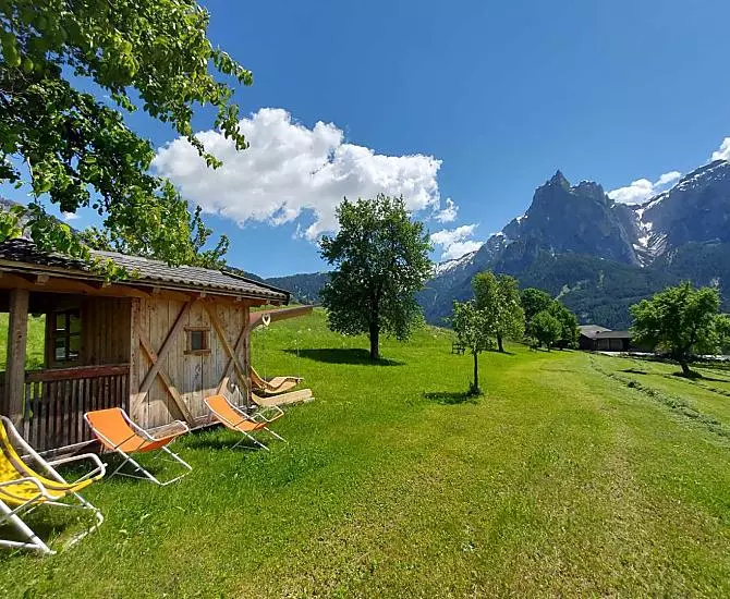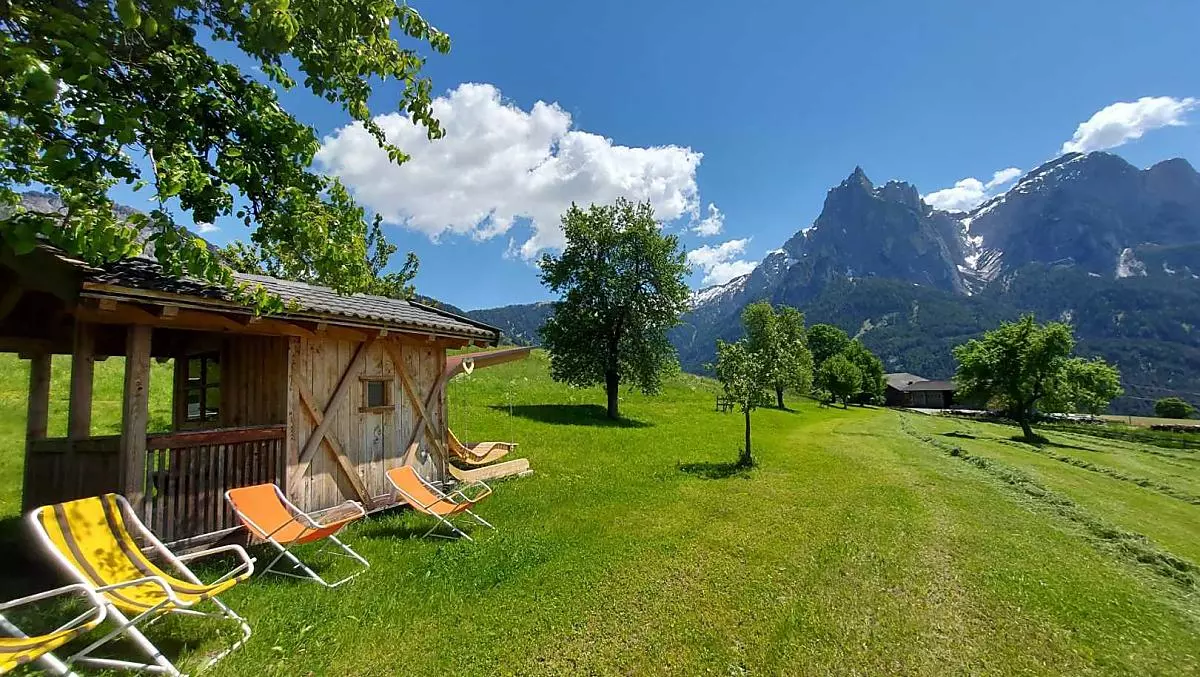 The hanging lounger in the orchard offers great mountain cinema: the Schlern, so beautiful.