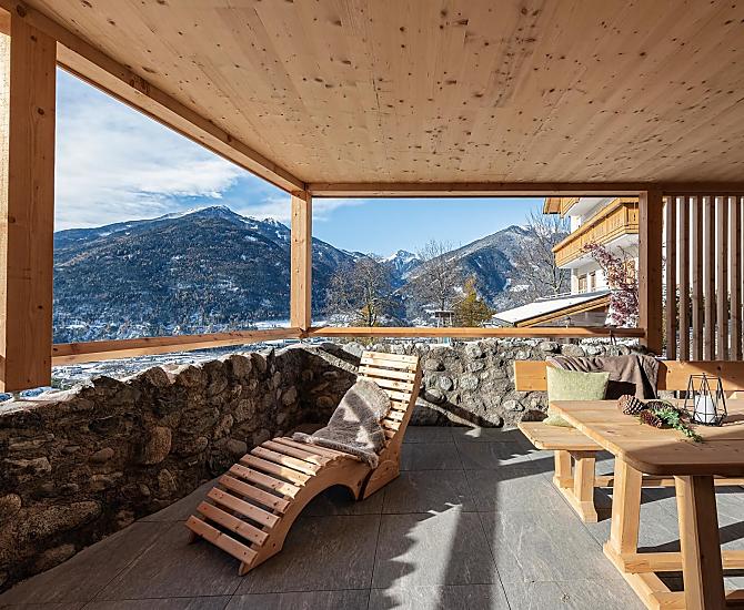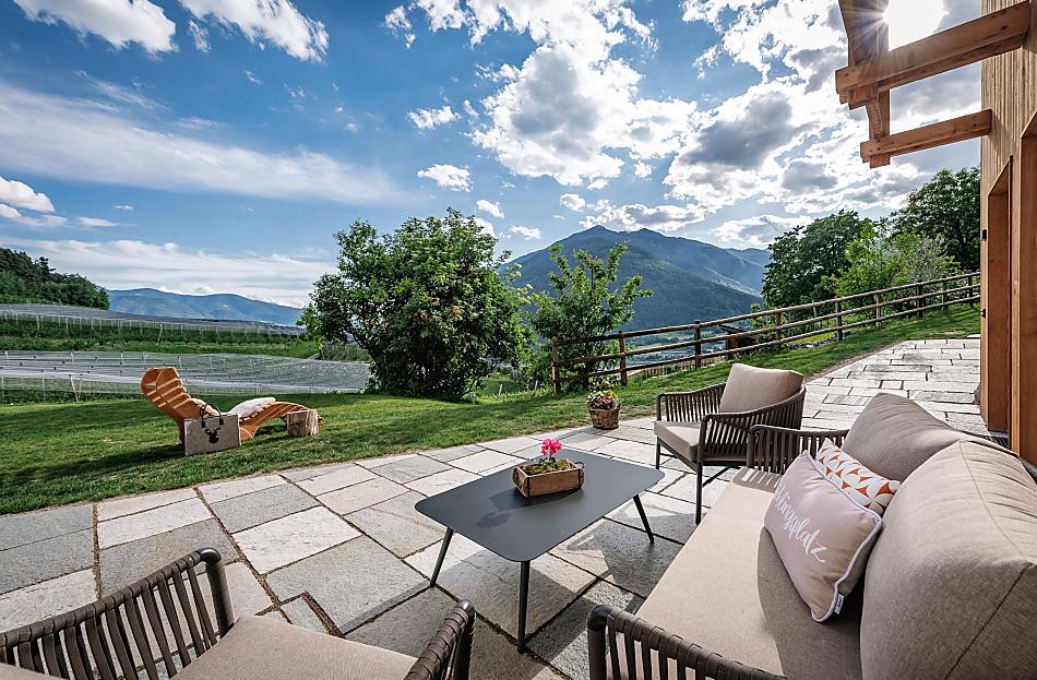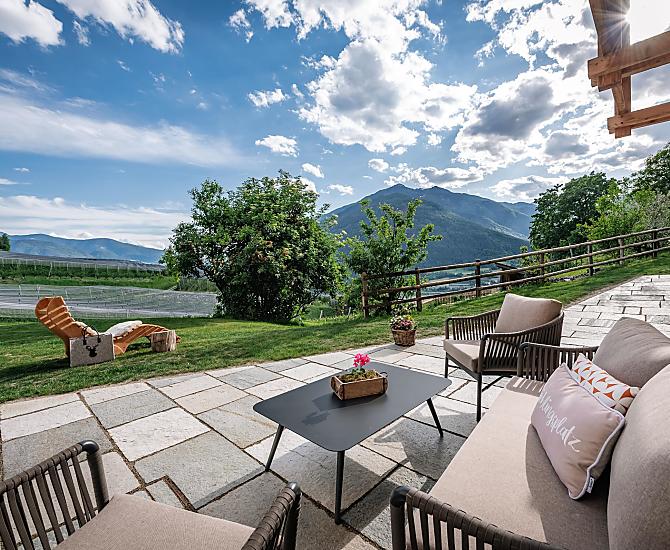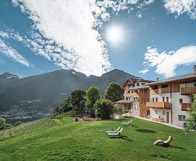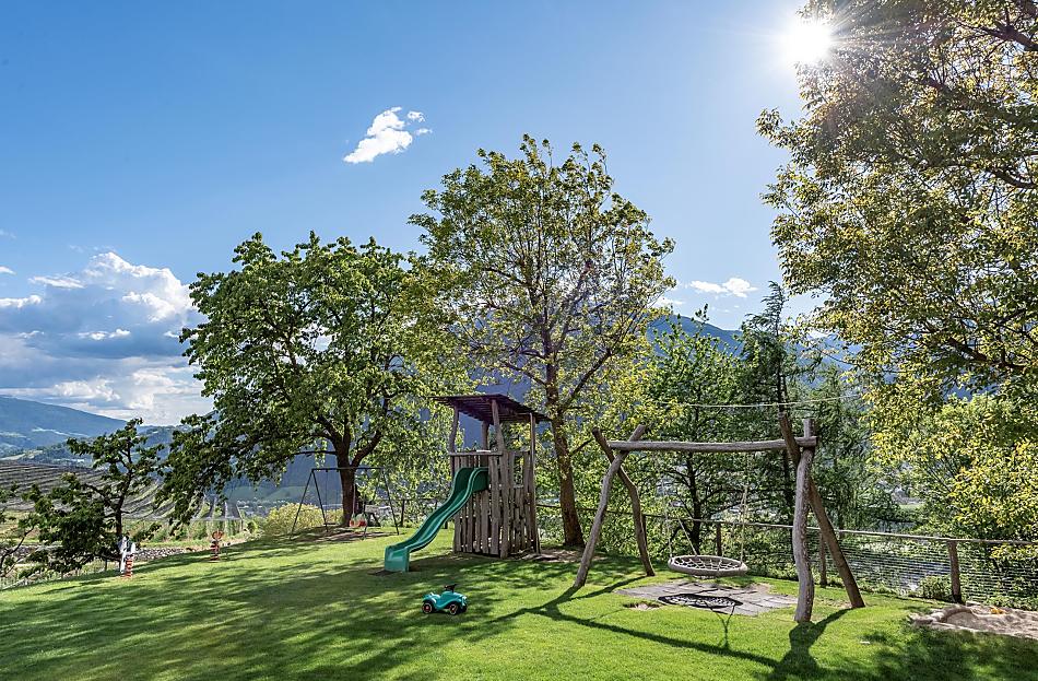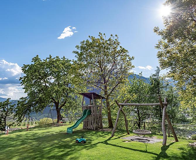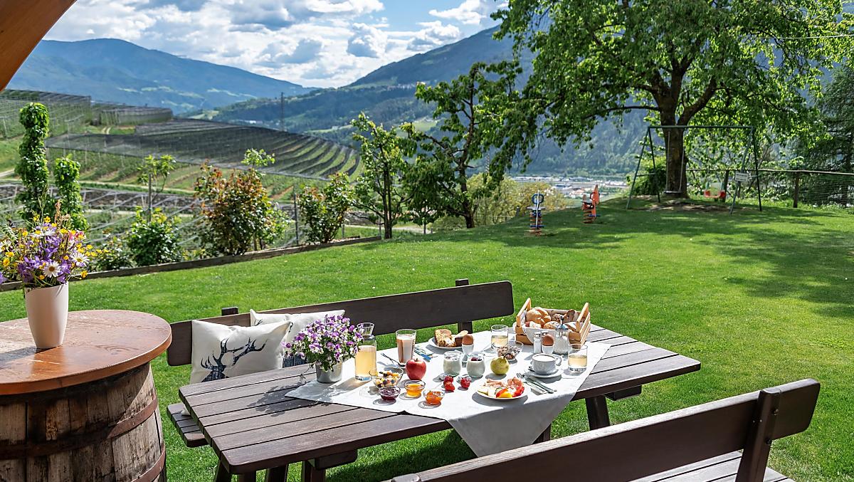 Our family-run fruit and wine-growing business is in a beautiful location at the end of the village of Raas. In the midst of vineyards and apple orchards you will find relaxation and tranquility with a wonderful view of the Brixen valley basin. On our large sun terrace you can relax and enjoy the view and the peace while the children let off steam in the beautiful children's playground.