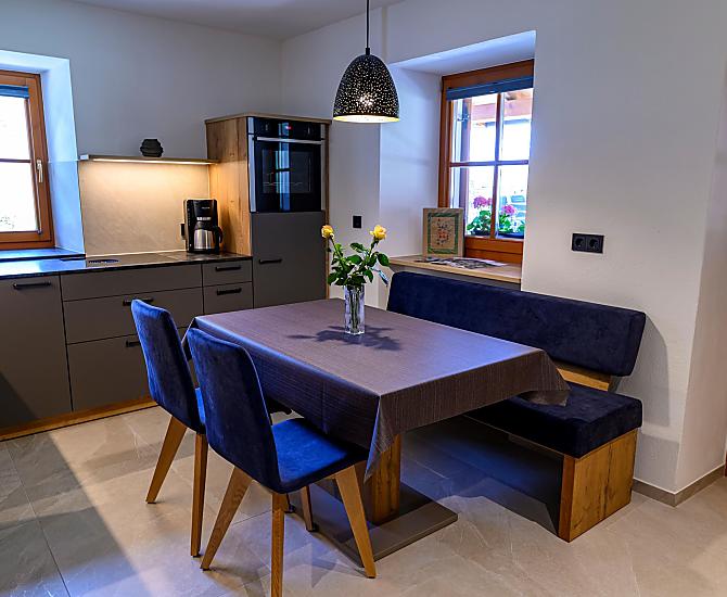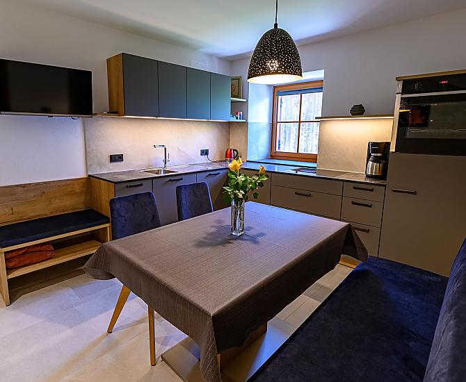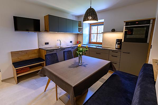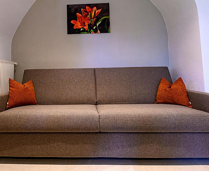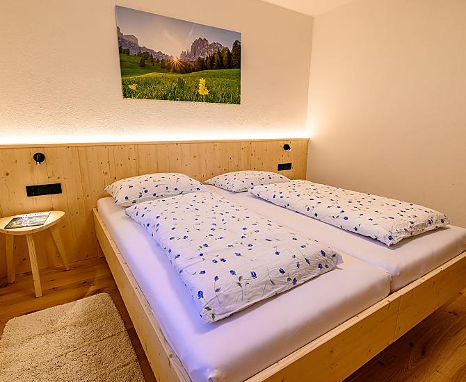 Our farm is very sunny with a wonderful panoramic view above the village of Seis on the traffic-calmed Seiseralm-Straße. We are an ideal starting point for your tours - whether on foot, with a stroller, e-bike, bus or car. In our free time we are also very active and versatile in sports and are happy to give you tips for your activities. The panoramic sunbathing lawn invites you to relax after a strenuous tour. Your children can enjoy the playground or meanwhile feed the grass to the chickens! Use our stone plate grill.