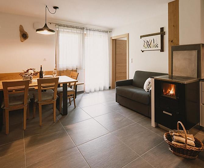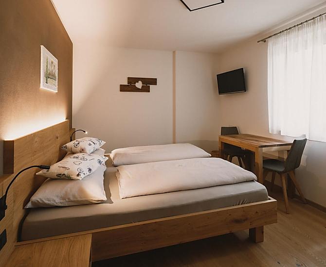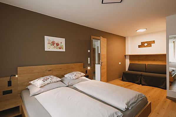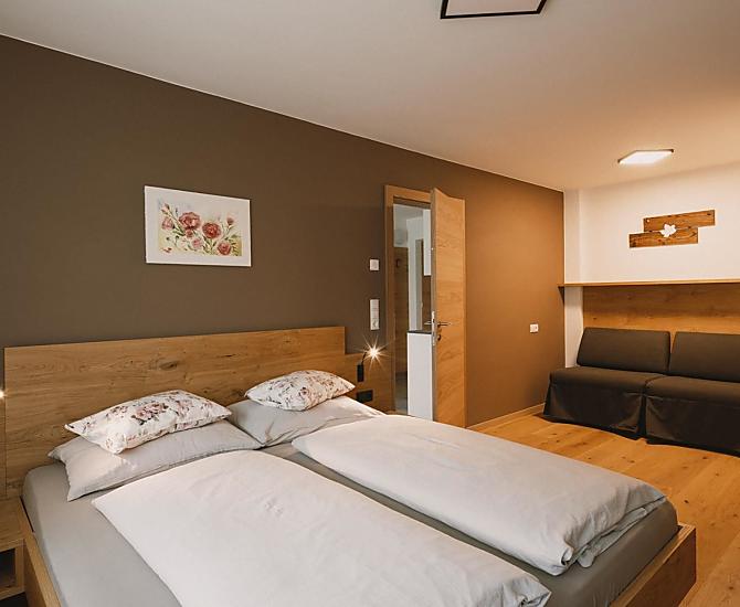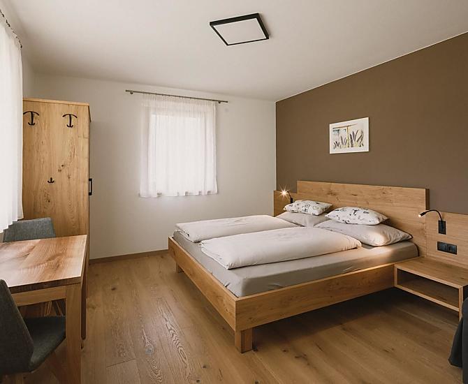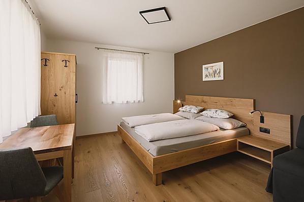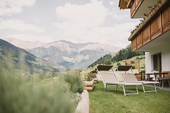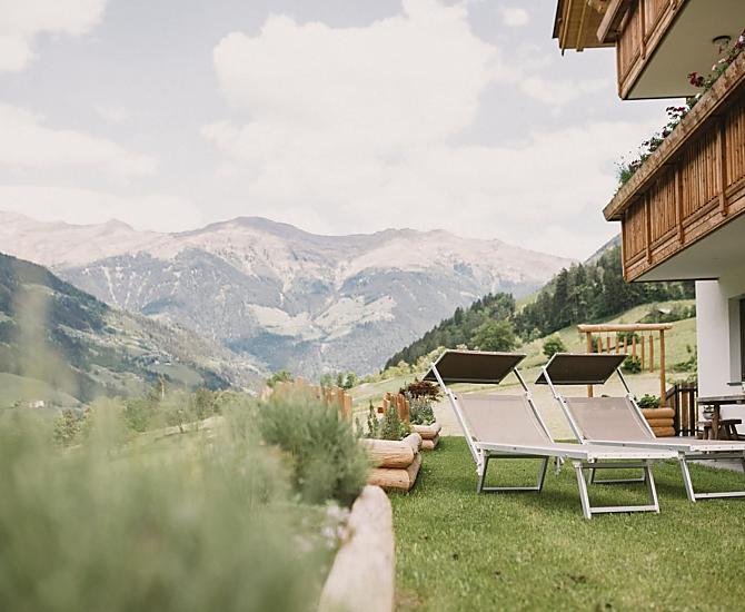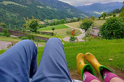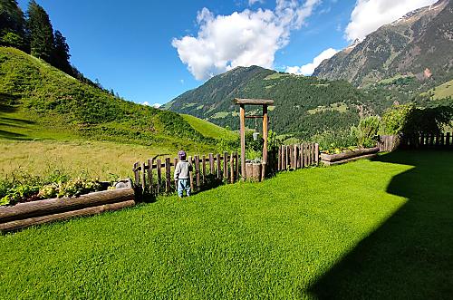 Drive over the Reschenpass or Brennerpass to Meran, then into the Passeier valley to St. Martin. From the main road take the first right, over the bridge, turn right again after the Golf Lodge. Go straight ahead through the golf course, turn left about 100 m before Hotel Andreus, follow the road steeply uphill through the meadows, take the next turn on the right and you're there.