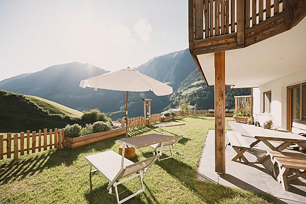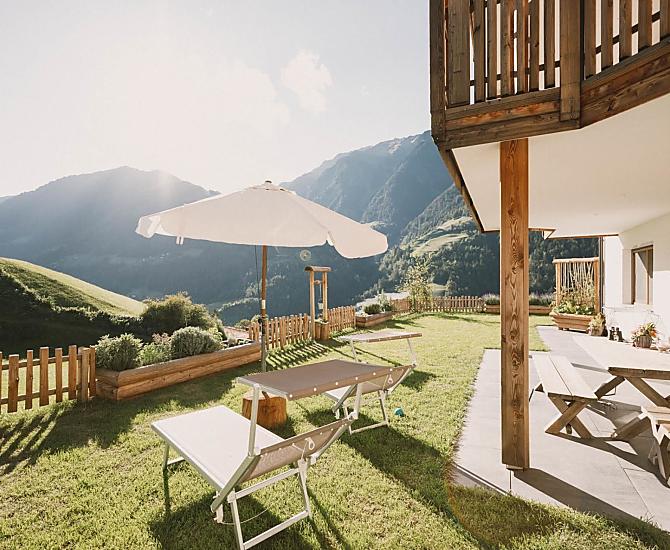 From the Timmelsjoch to St. Martin, turn left off the main road after the children's playground. Drive over the bridge, after the Golf Lodge, turn right. Go straight ahead through the golf course, turn left about 100 m before Hotel Andreus, follow the road steeply uphill through the meadows, take the next turn on the right and you're there