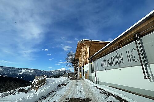On the A22 Brenner motorway, take the Bozen Süd exit and continue on the MeBo expressway in the direction of Meran. There, take the Meran Süd exit and follow the signs towards Hafling. From Haflingfollow the road in the direction of Verano for another 8 km to the center of Vöran. Now turn right towards the church. Keep left at the church, past the parish building and the elementary school, and then turn right into Bachweg. Follow the path for about 700 m and then take the first ramp on the left. After 200 m you have arrived at the Untermathonhof.