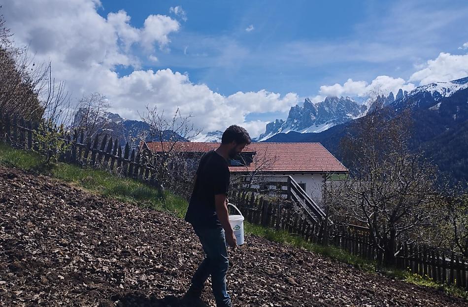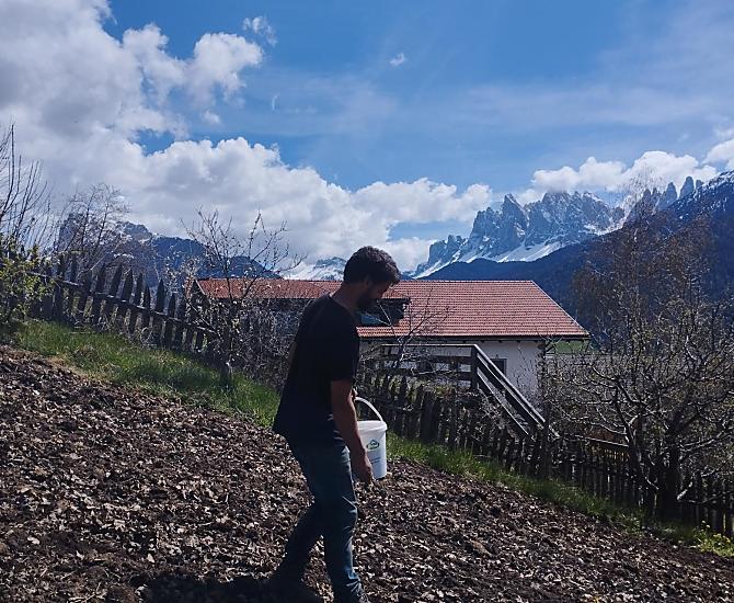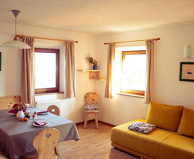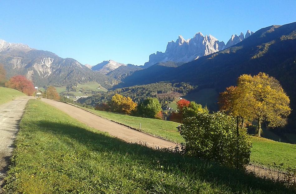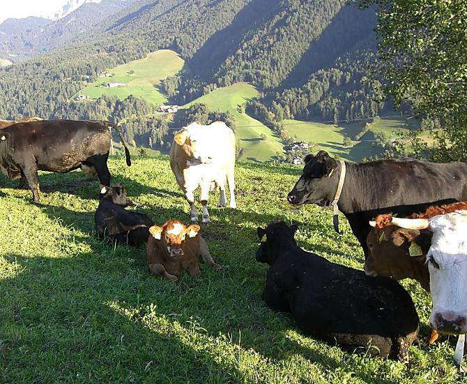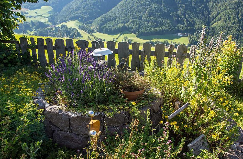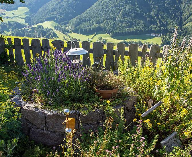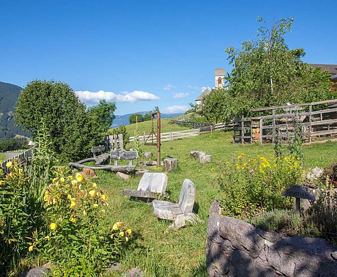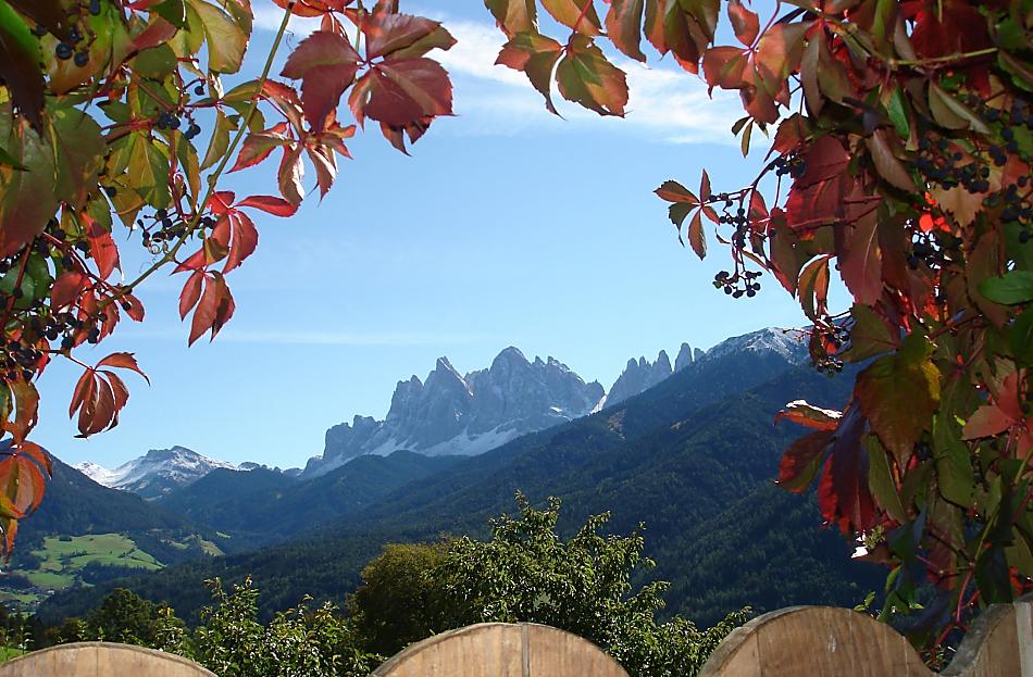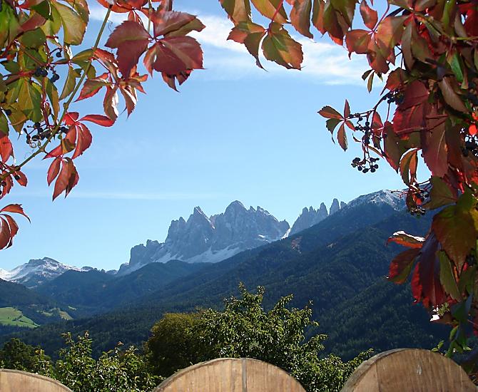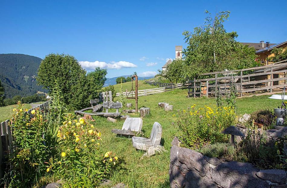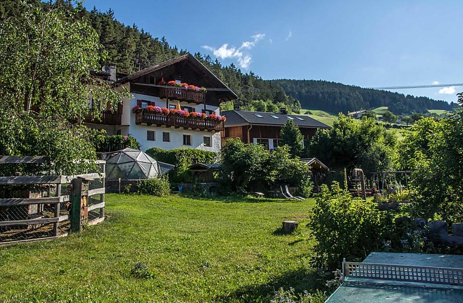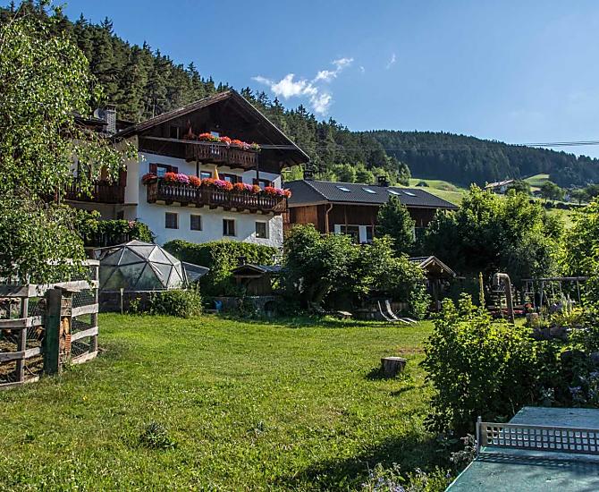 A place in the Sun! Our organic farm is in a unique scenic location on the sunny side of the Villnößtal valley with a wonderful view of the Geisler massif in the Dolomites. You will find green meadows, forest and clear air all around our mountain farm. In our large garden, away from any through traffic, both young and old can relax. Beautiful hikes, also with prams, possible directly from the farm.