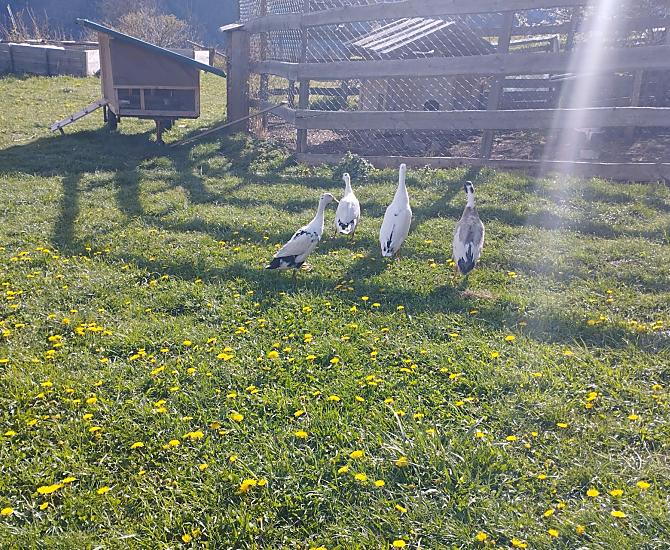 chickens, Indian runner ducks