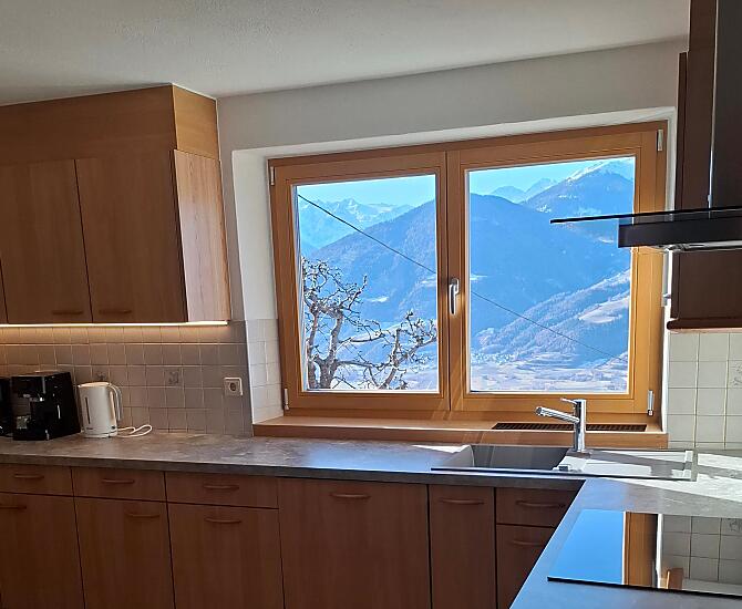 The flat enjoys a secluded spot with all-round views reaching from the Ortlergruppe mountains across the Sesvenna into Matscher Tal valley as far as the Weiskugel mountain.