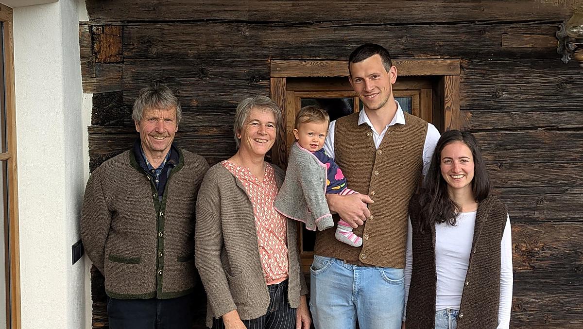 We are at home at 1,750 m - farmers Luis and Anna, young farmer Thomas with his girlfriebd Katja and daughter Valentina, as well as senior farmers Luis and Anna.