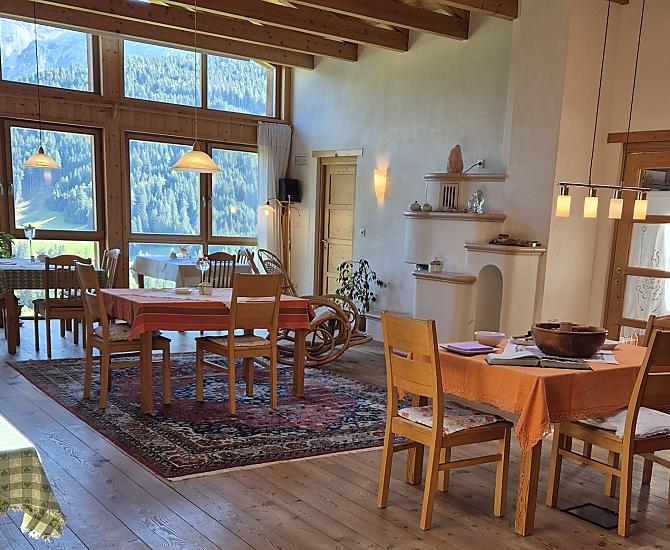 - Farm's own products at breakfast: milk, yoghurt, speck, sausages, eggs, fruit jams, cordial, dried fruit, herb teas, seasoning, bread, fresh vegetables in season