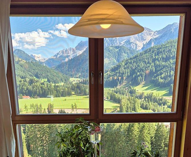 In the guest wing – with its window front – you will be treated to a wonderful view of the valley and the Dolomites.
