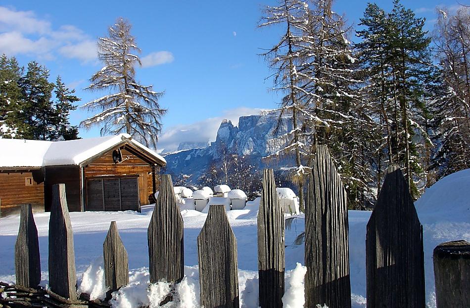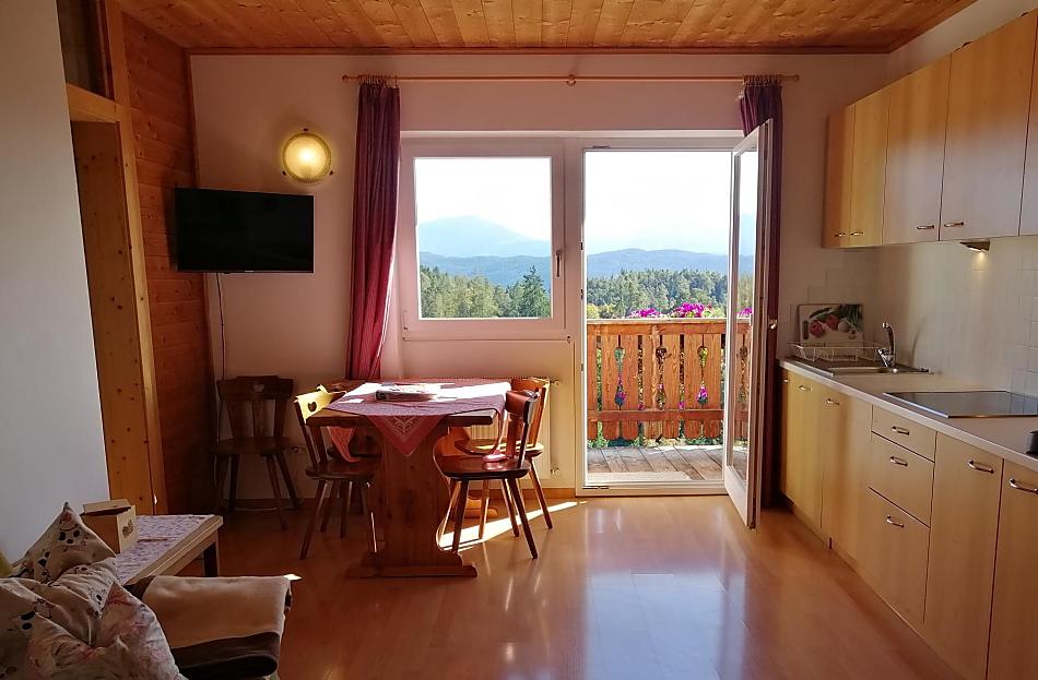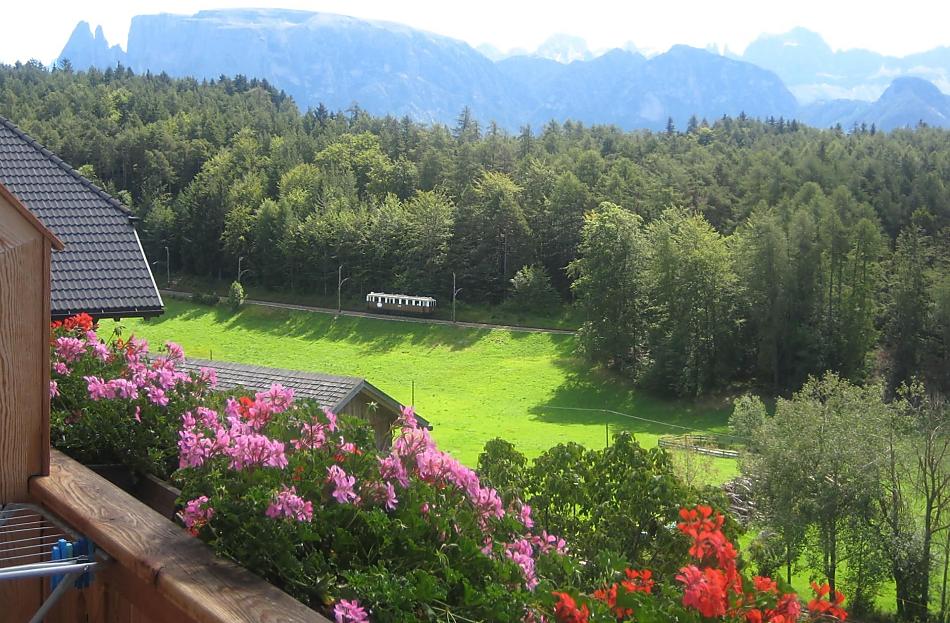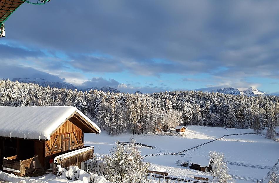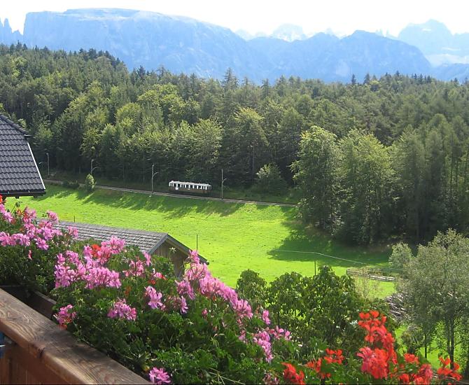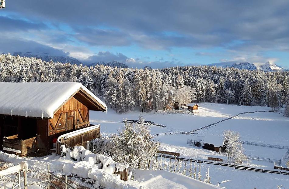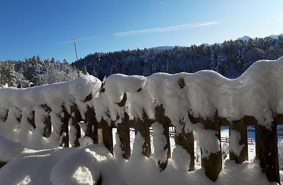 Our farm with animals is at 1,250 m in the middle of meadows and forests and at the end of a road. The Rittner tram stop is a few minutes' walk away (no noise!). Wolfgsrubner Lake (bathing lake in summer and an ice skating rink in winter) can be reached quickly on foot. Public transport to the swimming pools at Klobenstein and Oberbozen may also be reached in a few minutes on foot.