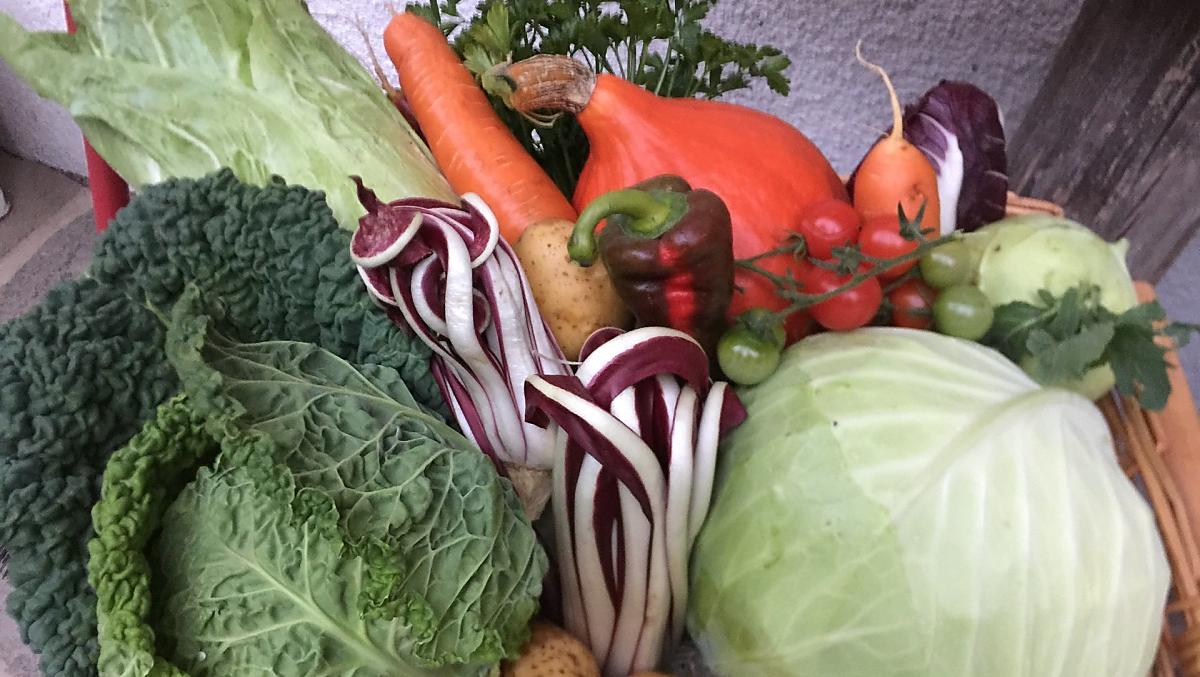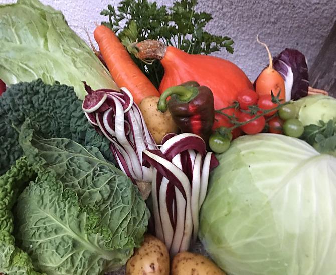 - fresh vegetables in season (beetroot, cabbage, carrots, courgettes, kohlrabi, leek, lettuce, onions, pumpkin, radicchio, radishes, Swiss chard)