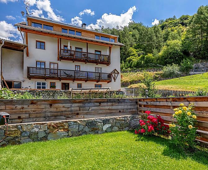 The detached farm is quiet and sunny in the heart of Vinschgau, surrounded by forest and meadows with a wonderful view of the surrounding mountains and the valley.