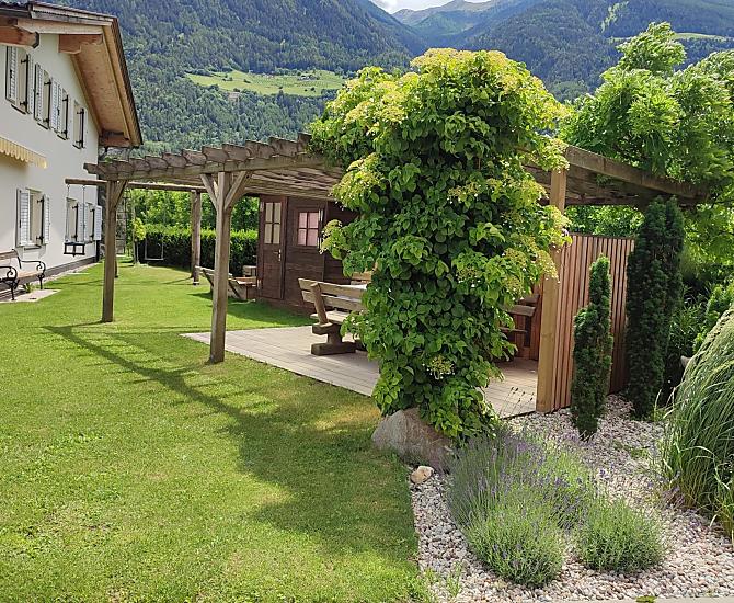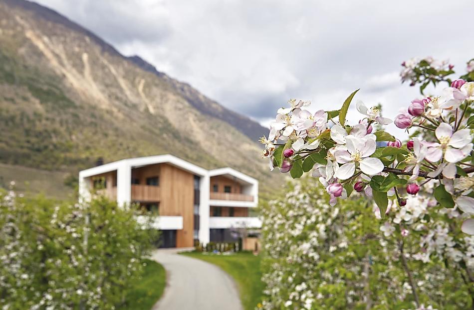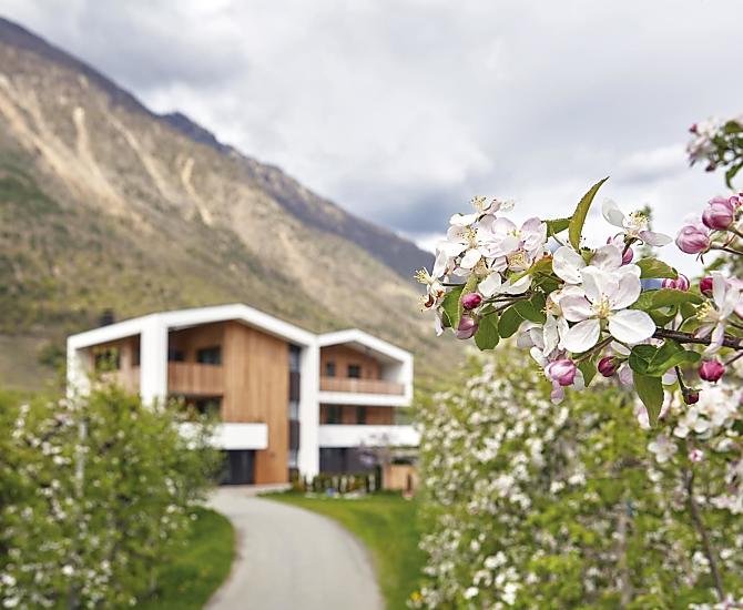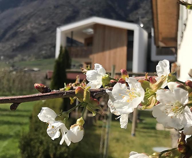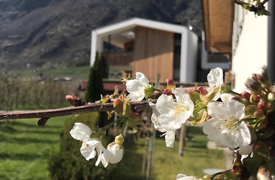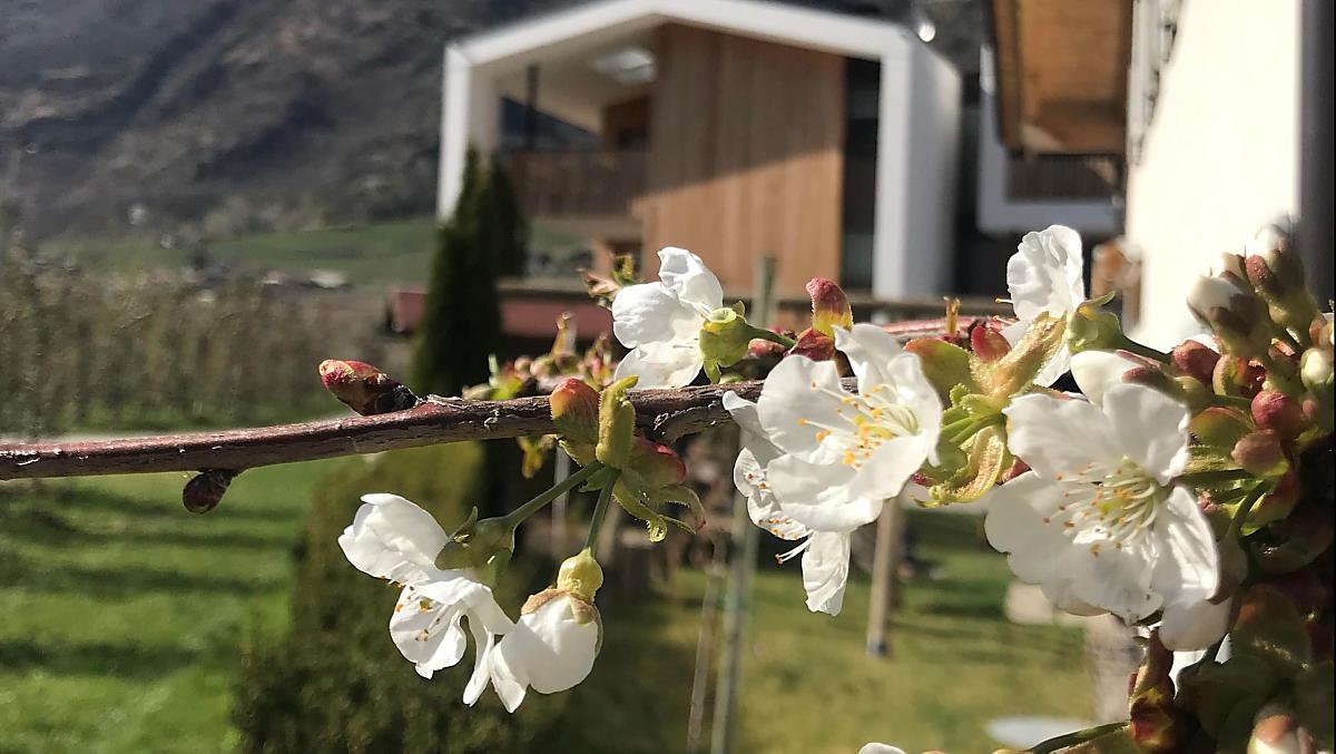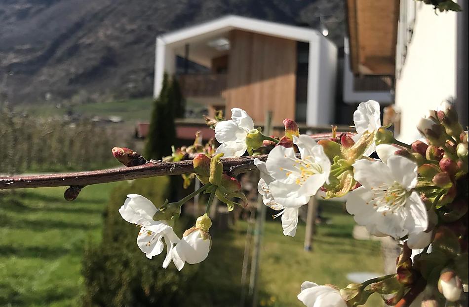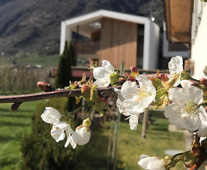 Our farm is situated in a quiet location between Kastelbell and Tschars, in the midst of the orchards of the Vinschgau. We are a family business and are the 3rd generation to run our fruit farm according to Bioland guidelines. Our location next to the Etsch river cycle route is ideal for cycling tours, but also for your hiking holidays and for simply relaxing on holiday. Our cosy, fully equipped holiday flats on the ground floor with access to the garden invite you to relax and unwind. On request, we can put together a breakfast basket with farm produce and products from neighbouring farmers for an enjoyable start to the day.